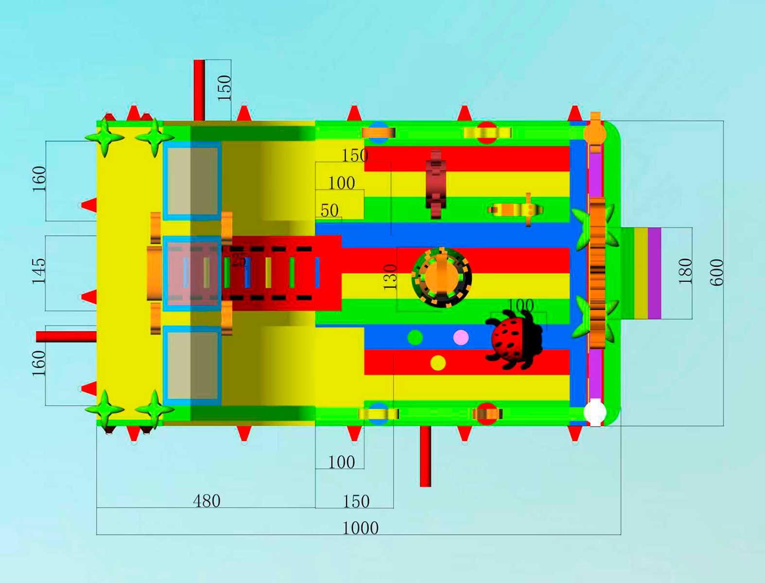 - Максимальная нагрузка — 800 кг, допускается одновременное пребывание до 17 детей. Дети до 7 лет должны находиться под контролем взрослых.