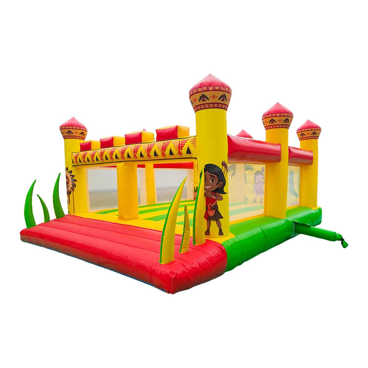 Надувной коммерческий батут «Индейцы» — это не просто аттракцион, а настоящая игровая площадка, которая превращает любой праздник или мероприятие в увлекательное приключение. Благодаря красочному оформлению в индейском стиле с героями, тотемами и кактусами, он моментально приковывает внимание детей и вызывает желание прыгать, играть и веселиться.