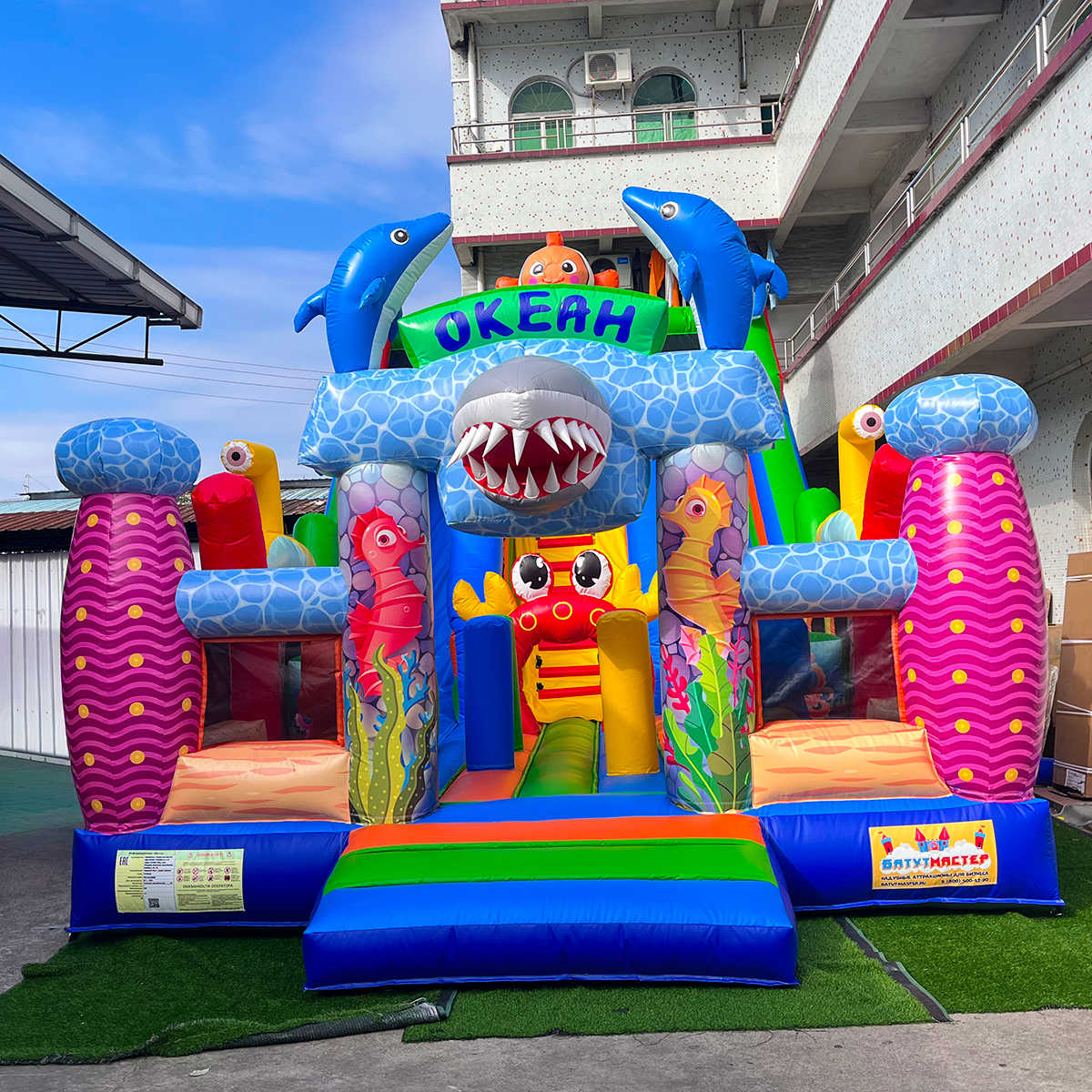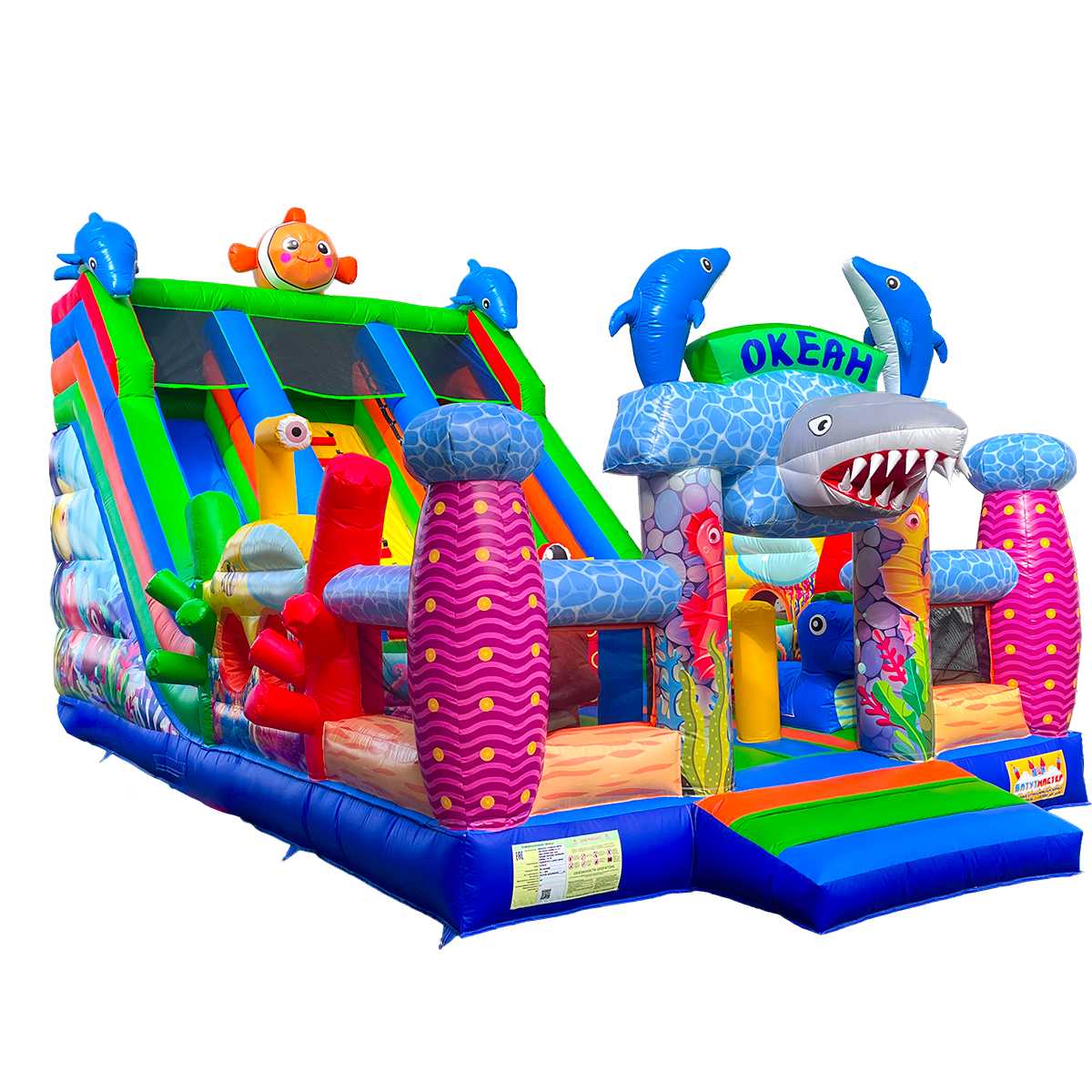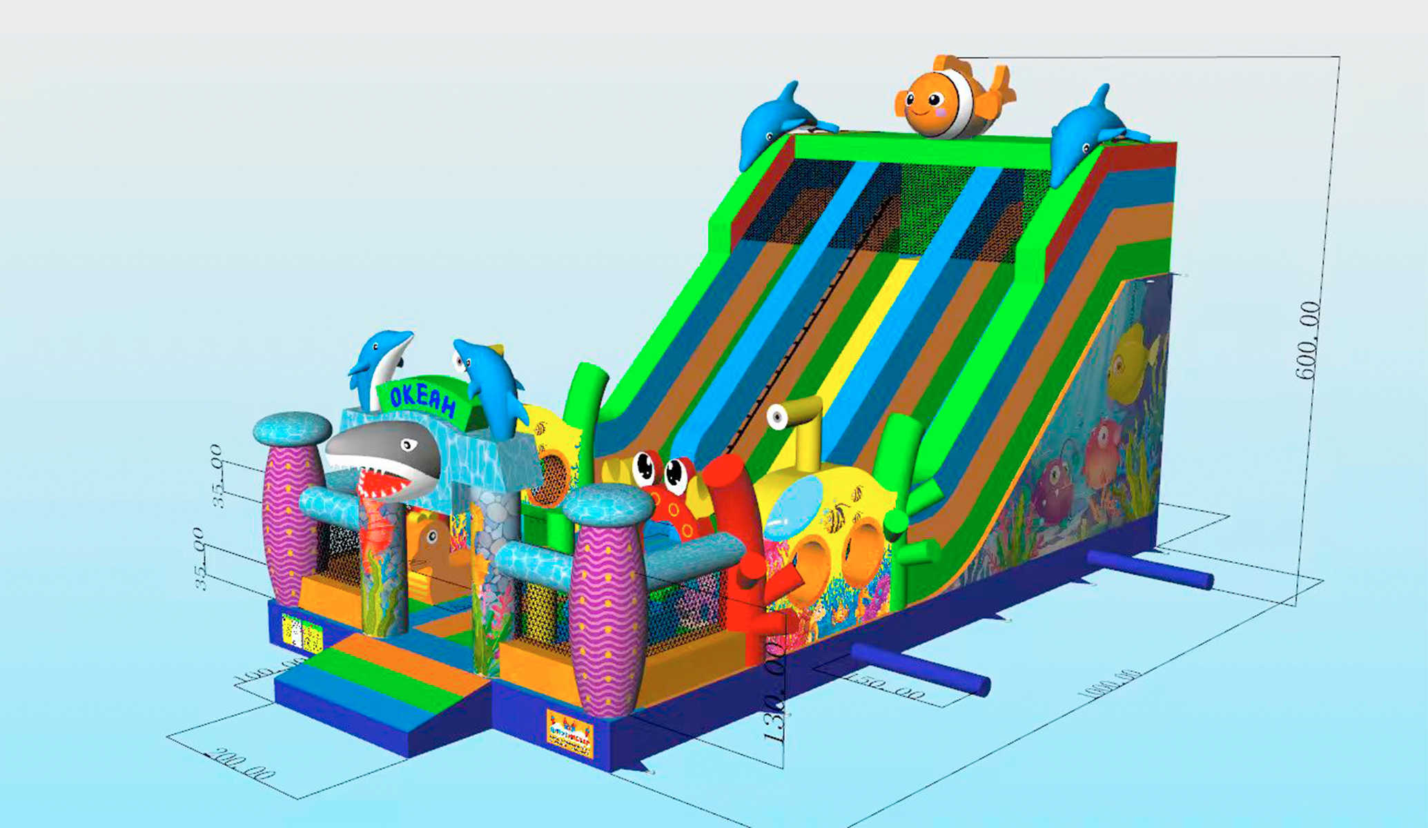 Коммерческий надувной батут «Океания» 10x5x6 м — это не просто аттракцион, а целый сказочный мир, который переносит детей в глубины яркого и доброжелательного океана. Как только маленькие путешественники заходят внутрь, их встречают красочные фигуры дельфинов, рыбок и забавных морских существ. Каждый элемент здесь будто оживает и приглашает к игре, превращая обычное развлечение в настоящее фантастическое приключение.