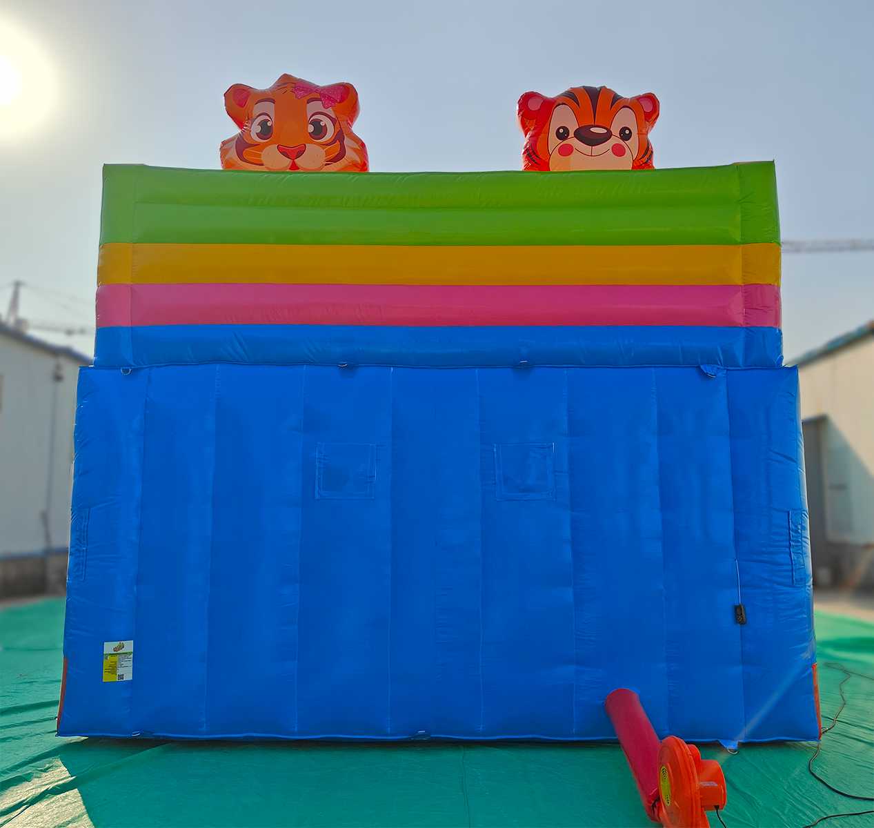 Надувной батут «Тигриная страна 5» — это красочный, тематический аттракцион размером 9x5x5 м, оформленный в стиле джунглей с милыми животными. Такой батут моментально выделяется на фоне других развлечений, привлекая детей своей яркой эстетикой и продуманной игровой зоной.
