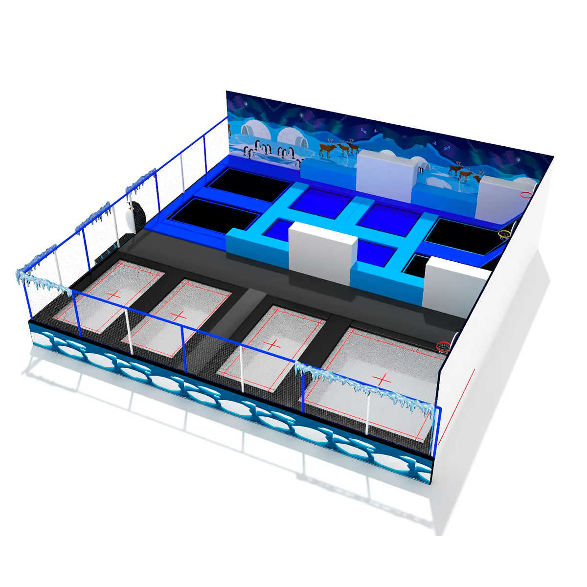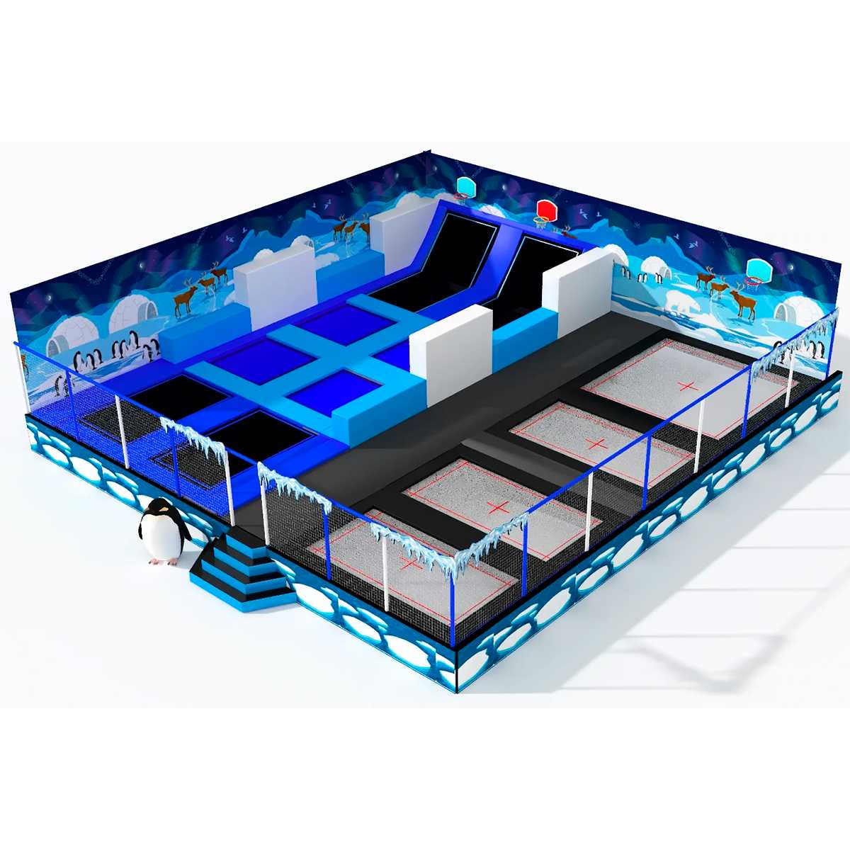 Размер арены — 14,5×14 м — позволяет разместить 12 полноценных батутных зон, включая: