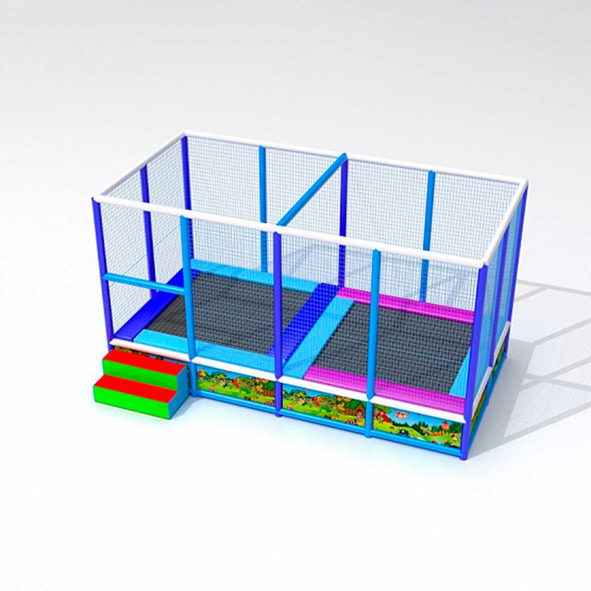 Батутная арена «Спорт» размером 5×2,44×2,8 м — это компактный и универсальный аттракцион, предназначенный для размещения в торговых центрах, игровых комнатах или частных детских площадках.