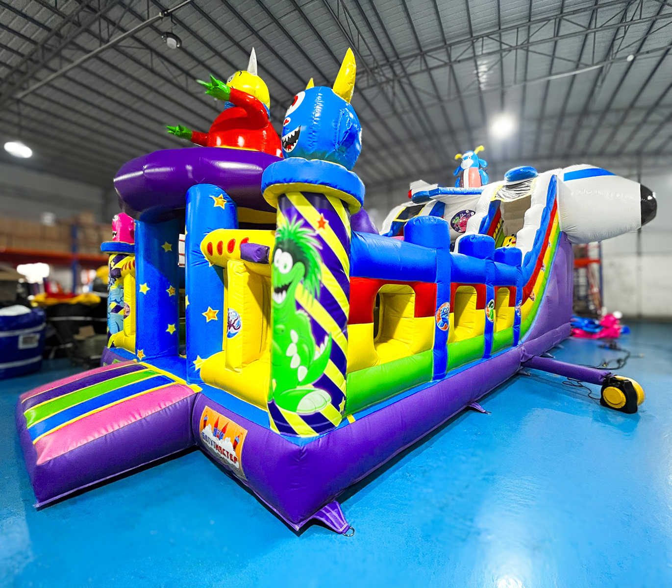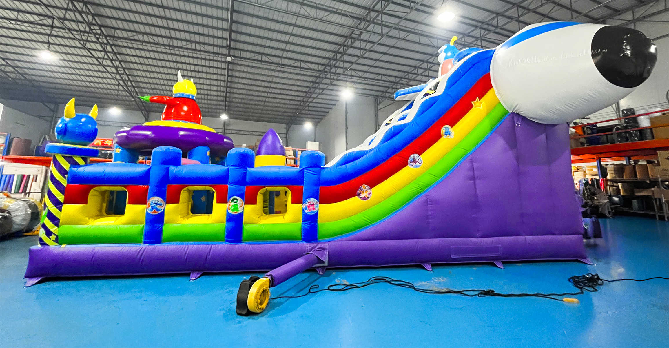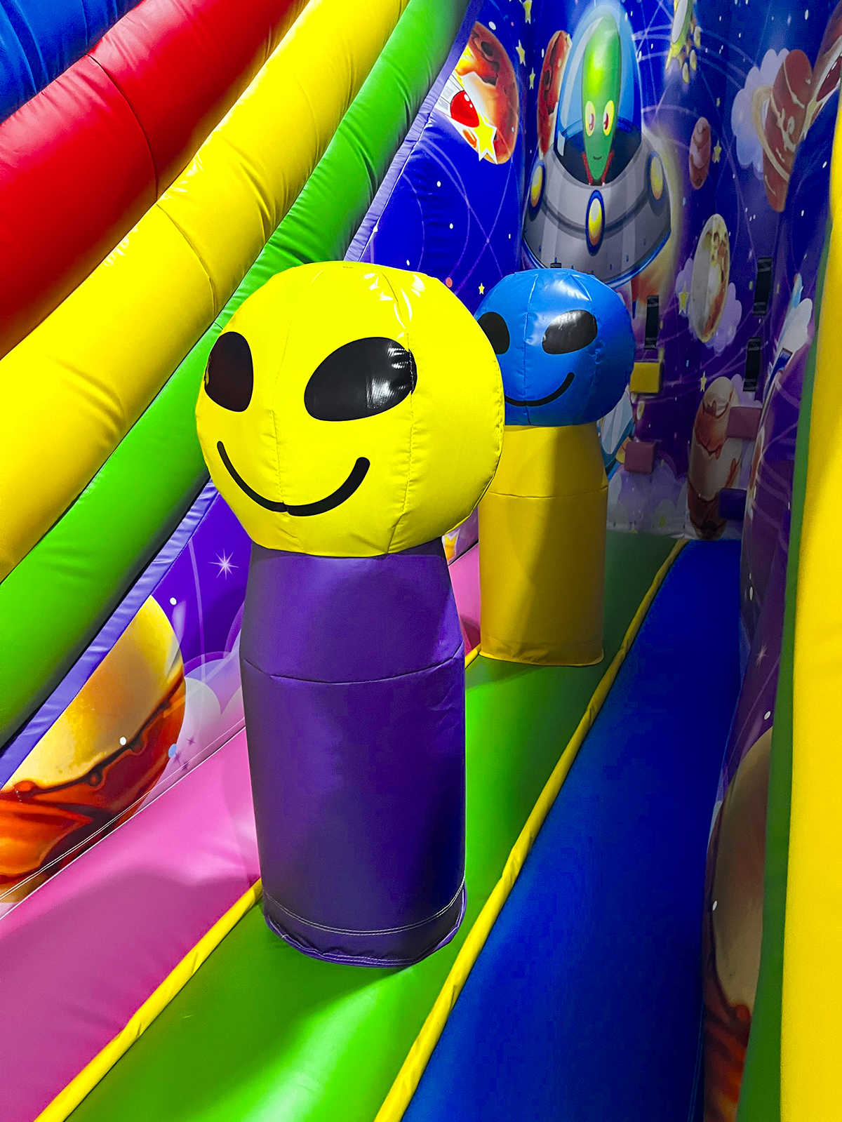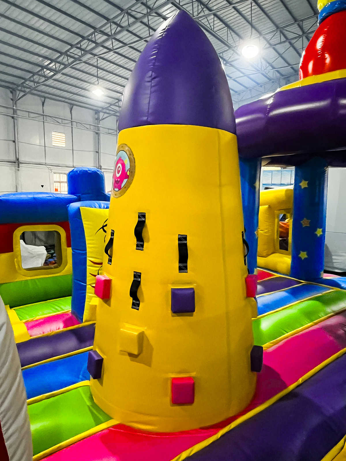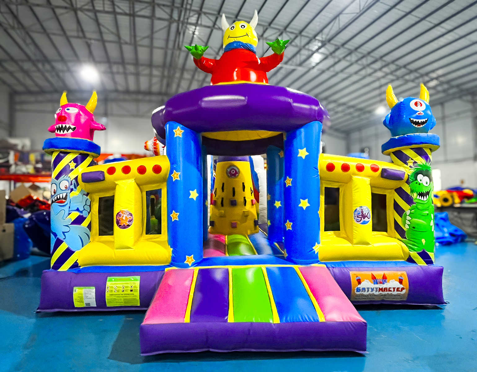 Коммерческий надувной батут «Космические зверята» 10x5x6 м — это яркая и насыщенная приключениями вселенная, где каждый элемент создан для того, чтобы переносить детей в атмосферу доброй фантастики. Зайдя внутрь, маленький посетитель словно оказывается на борту инопланетного экспедиционного корабля: вокруг возвышаются смешные космозвери, декоративные фигуры напоминают звездолёты и астероиды, а стены украшены динамичными цветовыми сочетаниями, будто небо мерцает сотнями звёзд.