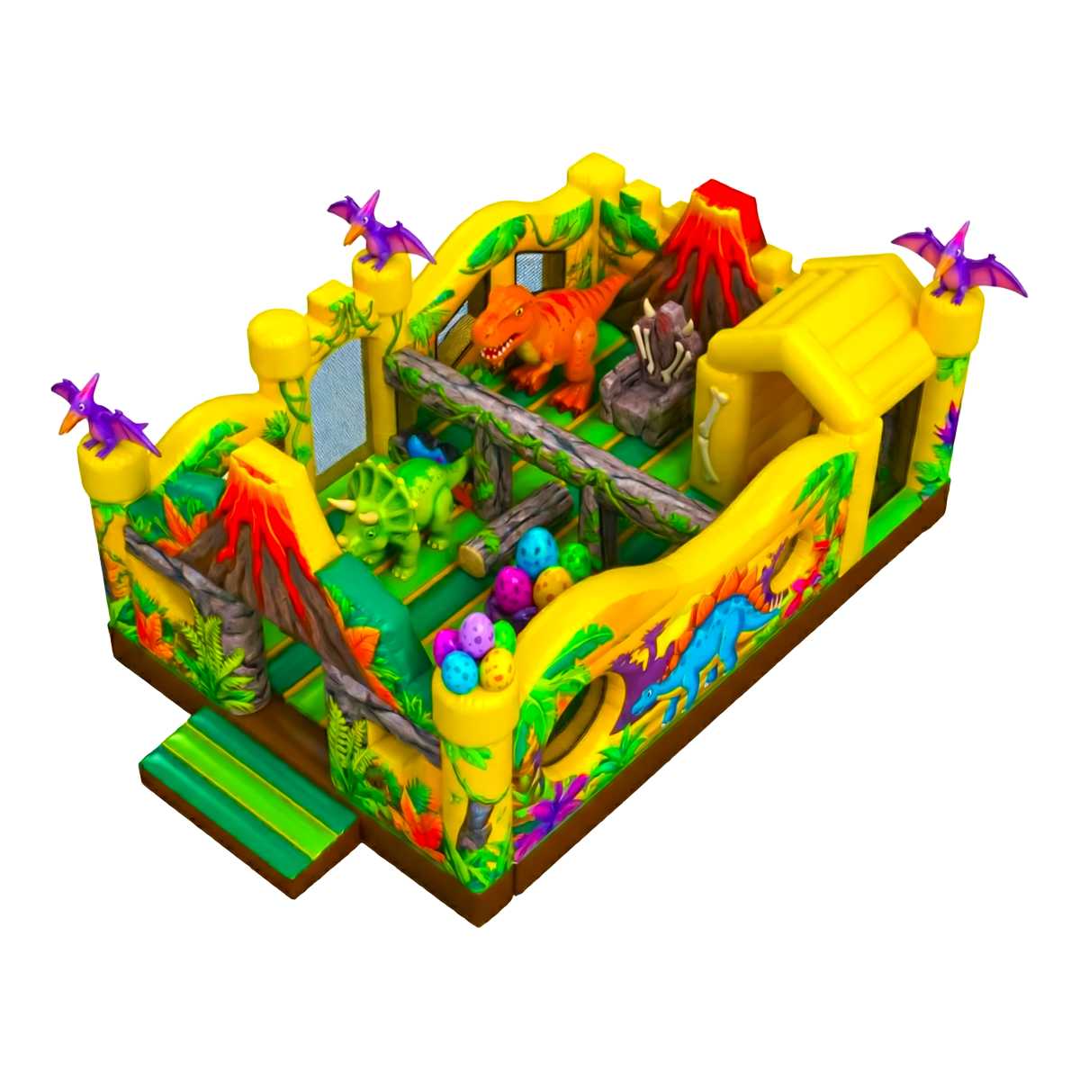 Надувной батут «Дино Остров» 7,2×5×3,7 м — это полноценный тематический аттракцион, созданный для активных детских игр и коммерческой эксплуатации. С первых секунд он привлекает внимание: яркий дизайн, насыщенные цвета, фигуры динозавров, вулканы и яйца создают волшебную атмосферу доисторического парка.