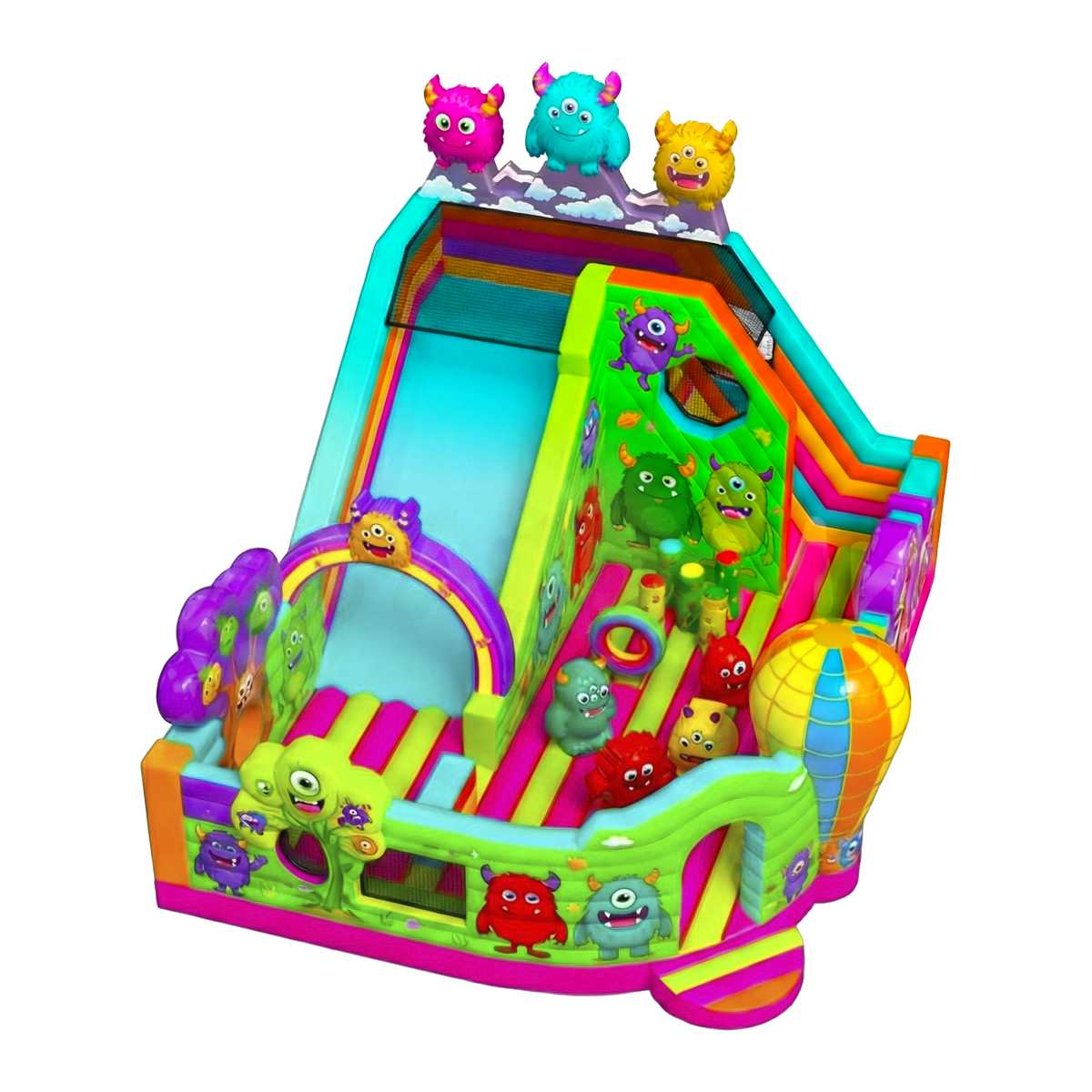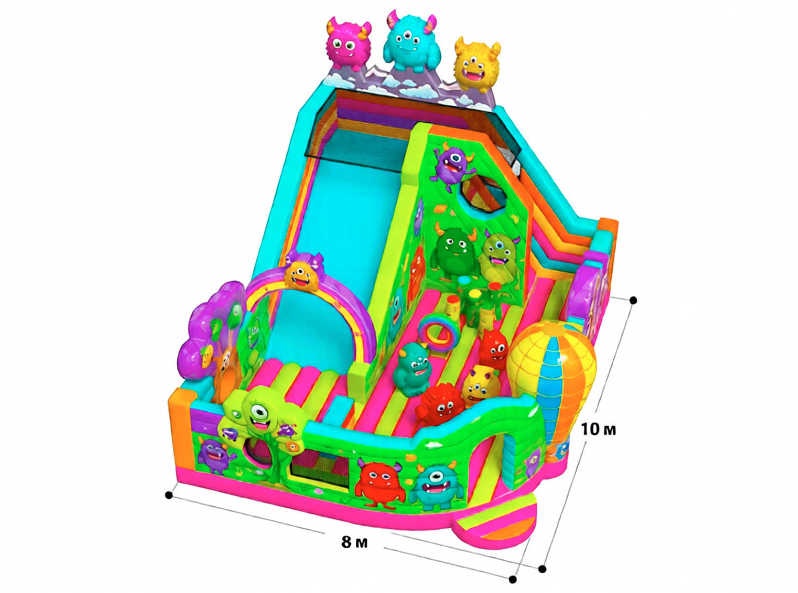 Коммерческий надувной батут «Милые монстрики» — это полноразмерный развлекательный центр с габаритами 10×8,6×7,3 метра, разработанный специально для привлечения внимания и получения стабильной прибыли. Его масштаб, яркое оформление и игровые элементы делают его идеальным решением для запуска прибыльного бизнеса в сфере развлечений.