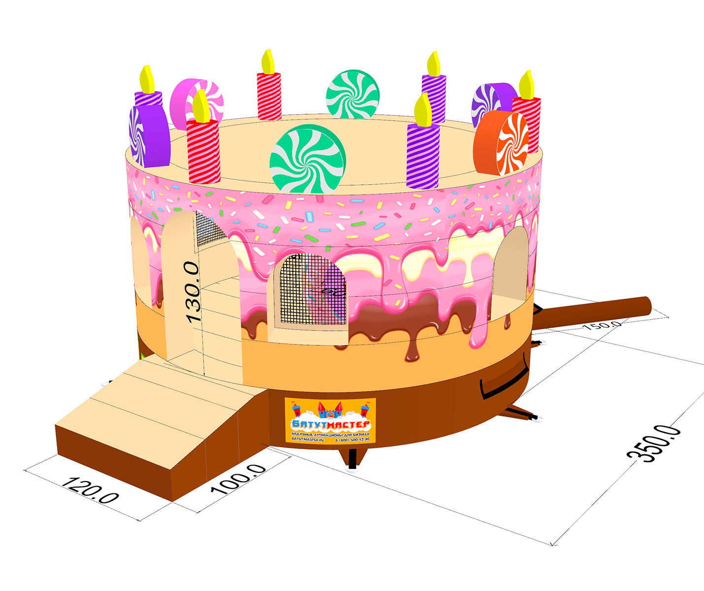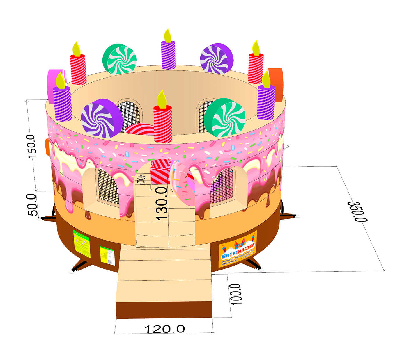 🛒 Коммерческий надувной батут "Торт" без крыши 3,5*3,5*3 м купить за 108000.0 ₽ | 🚚 Оплата при получении!