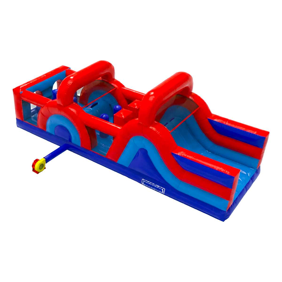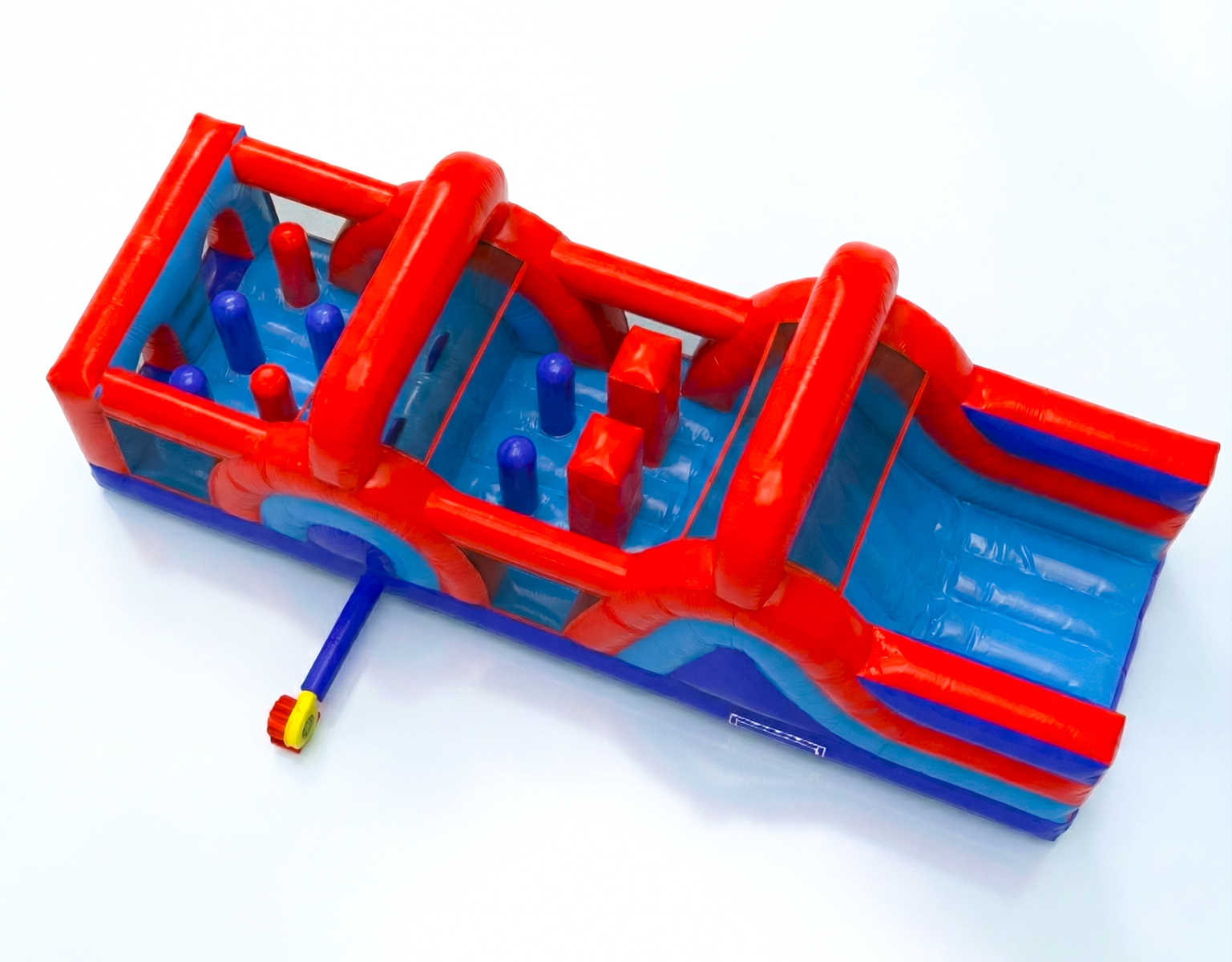 Отсутствие горки делает модуль безопасным для использования в замкнутых пространствах — нет риска столкновений или падений с высоты. Он не требует дополнительных креплений, кроме стандартных петель и якорей, и быстро надувается с помощью насоса (входит в комплект).