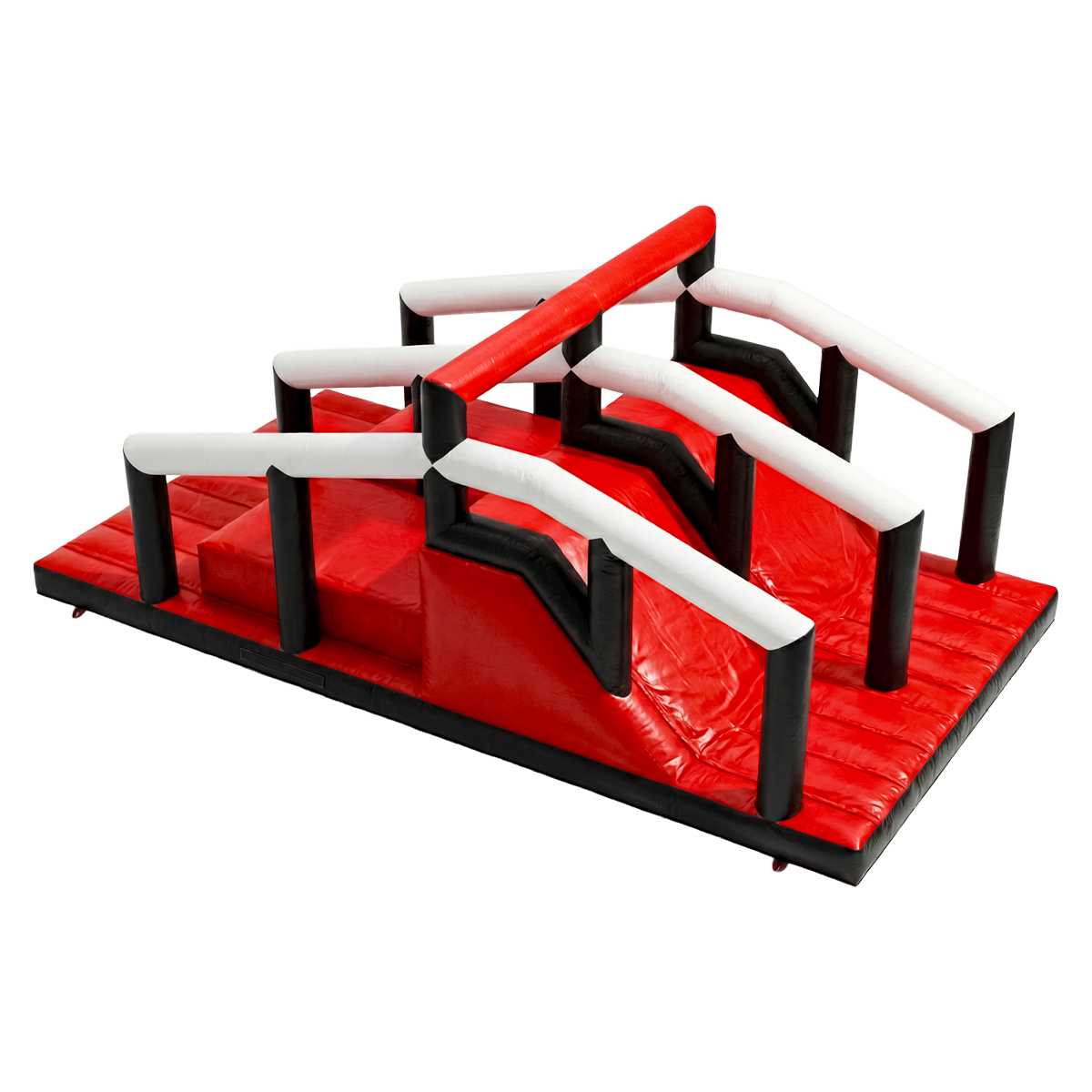 Модуль быстро собирается с помощью мощного насоса, обеспечивающего стабильное давление в течение всей сессии работы. Его конструкция совместима с другими надувными элементами, что позволяет расширить полосу препятствий под нужды конкретного мероприятия.