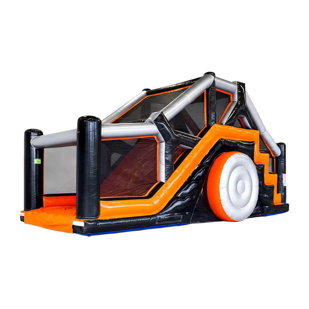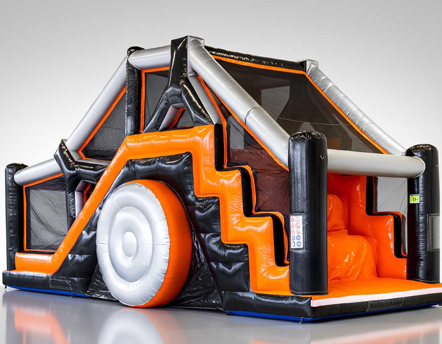 Секция надувной полосы препятствий «Монстрогараж» — это функциональный и визуально выразительный модуль, ориентированный на коммерческую эксплуатацию. Тематика транспорта и машин вызывает мгновенные ассоциации с гонками, скоростью и драйвом, что особенно привлекательно для детской аудитории. Контрастное сочетание чёрного и оранжевого цветов делает модуль хорошо заметным даже на насыщенных мероприятиях с большим количеством развлечений.