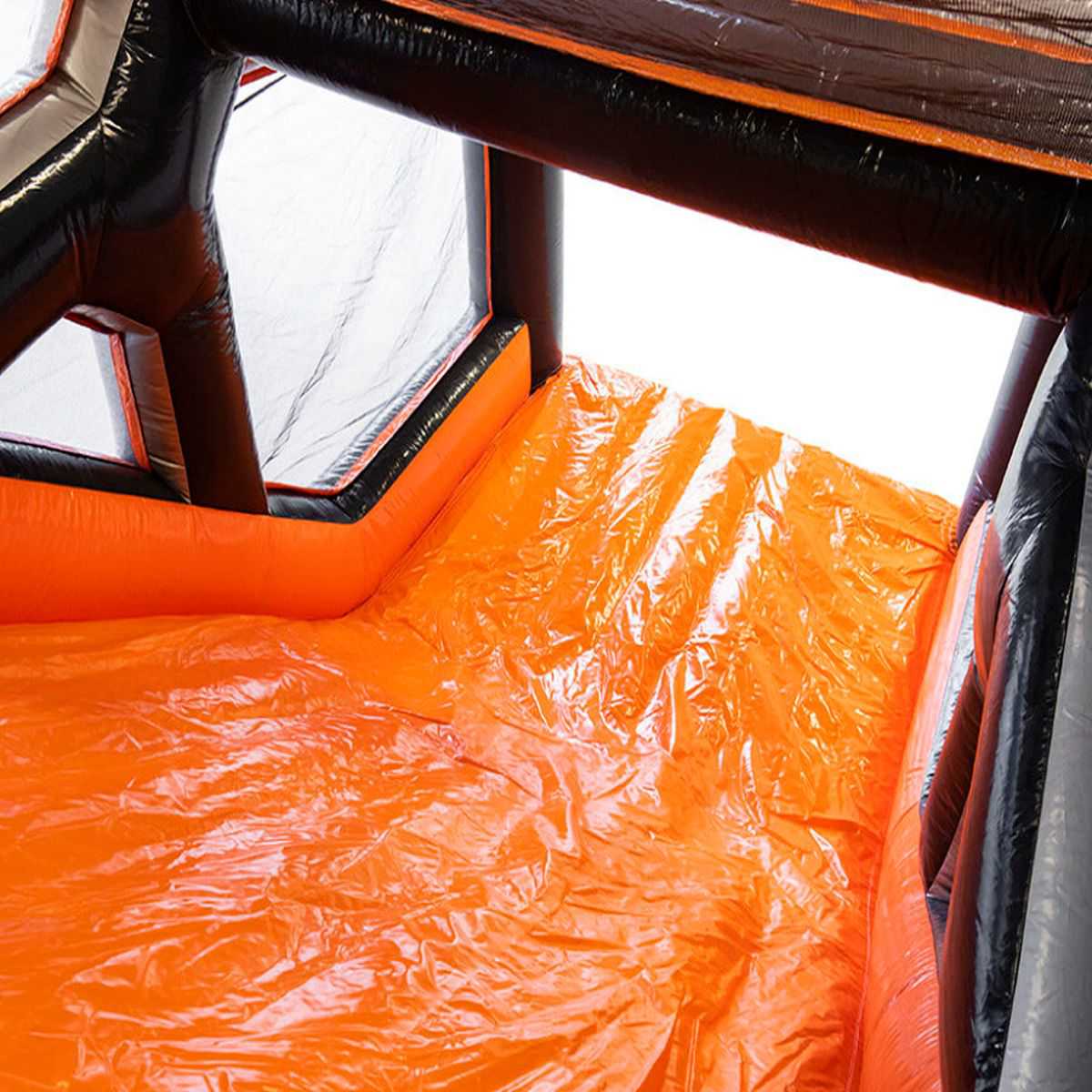 Монтаж секции не требует специальной подготовки персонала. Модуль разворачивается на площадке, фиксируется за крепёжные петли и подключается к насосу. После наполнения воздухом до рабочего давления секция полностью готова к эксплуатации. Демонтаж также выполняется быстро: насос отключается, воздух выпускается, модуль аккуратно сворачивается и убирается на хранение. Это особенно удобно для выездных мероприятий и сезонной работы.