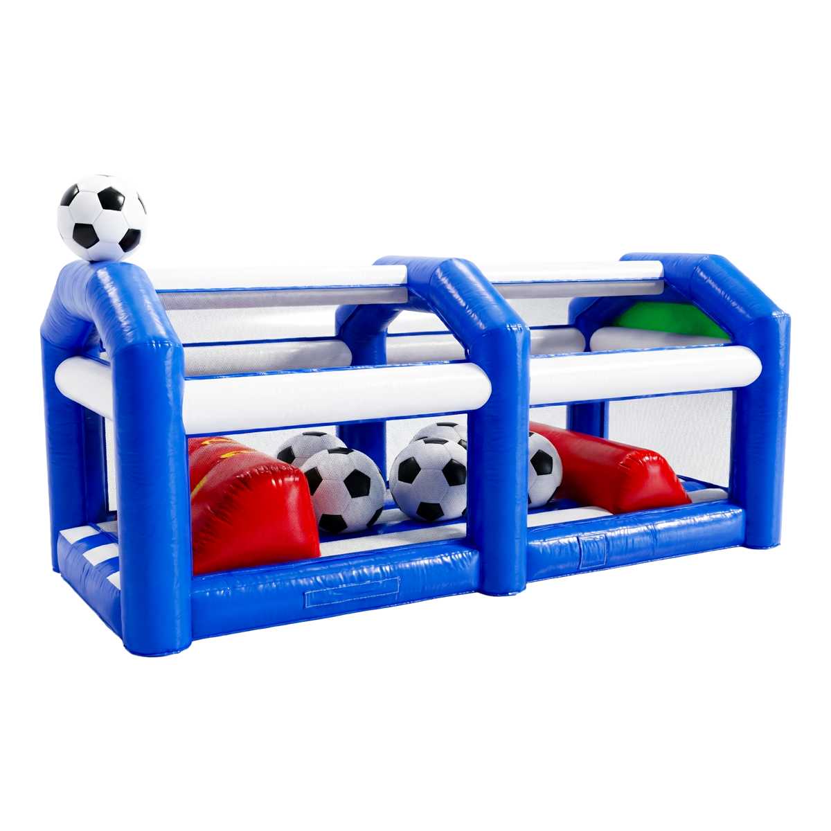 Секция надувной полосы препятствий «Футбомания» — это модуль размером 6x3x3 метра, который играет важную роль в создании масштабных игровых комплексов для детей. Выполненный в сочных цветах и с тематическим оформлением, он стилизован под атмосферу футбольного матча, что делает его особенно привлекательным для мальчиков и девочек, увлечённых спортом.