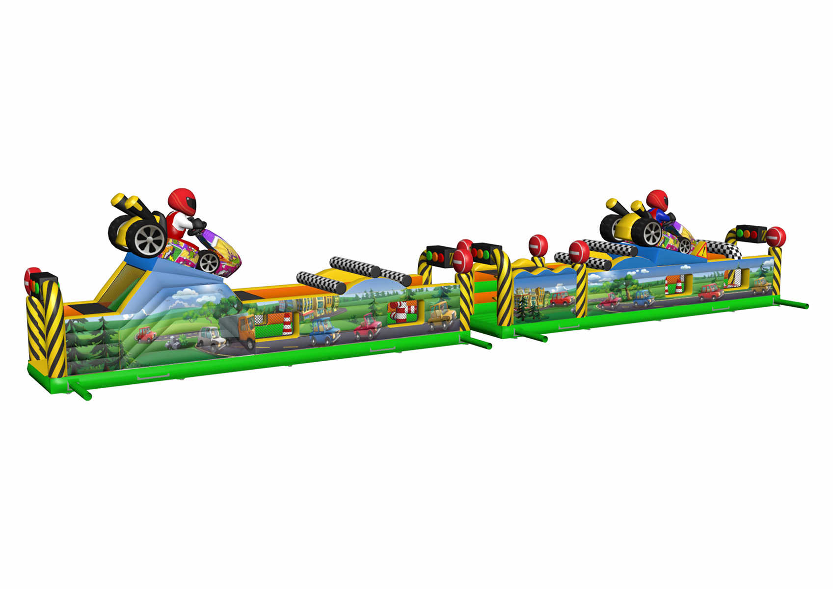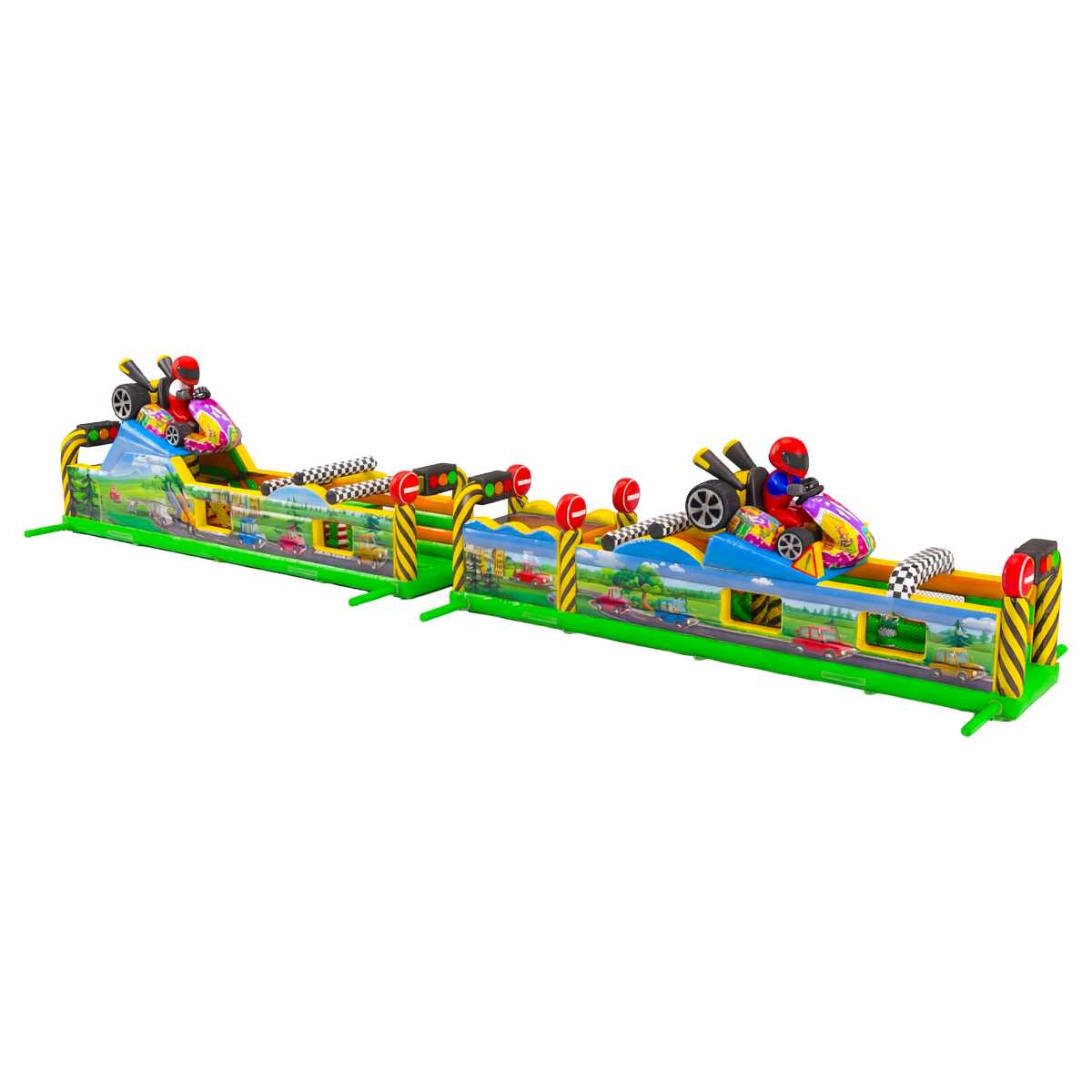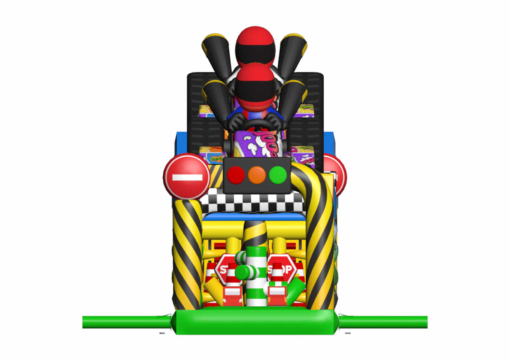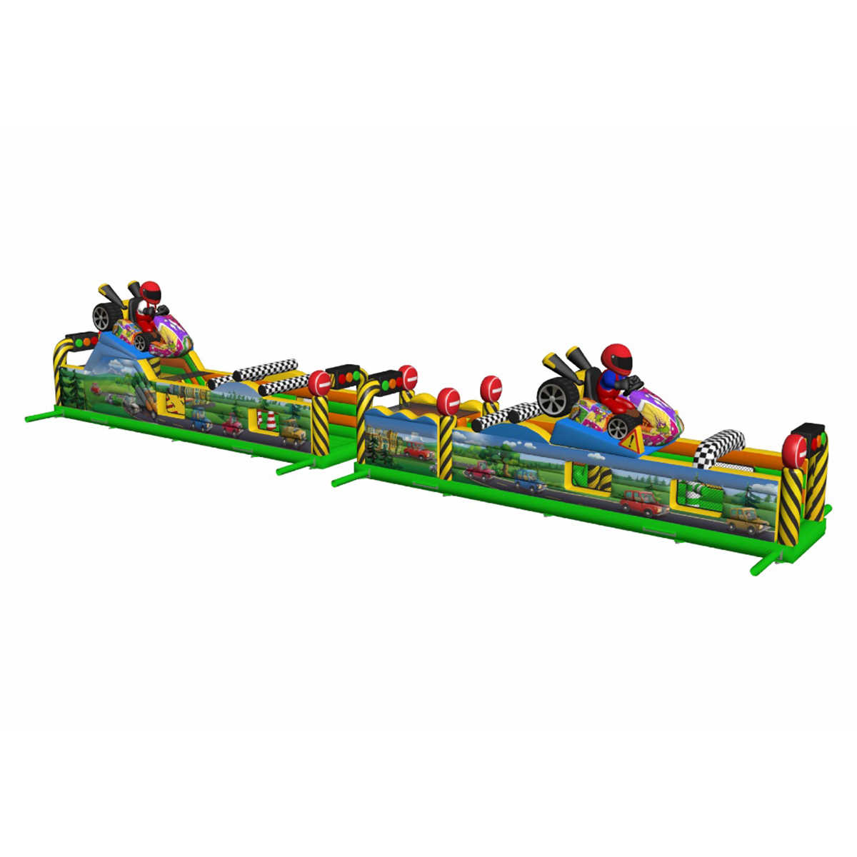 Коммерческая надувная полоса препятствий «Гран-при» — это не просто детский аттракцион, а настоящий гоночный трек в миниатюре. С первого взгляда он привлекает яркими цветами, гоночными машинами, финишными флагами и фигурами пилотов. Такой аттракцион становится визуальным центром на любом мероприятии: будь то городской праздник, фестиваль, корпоратив или семейный день.