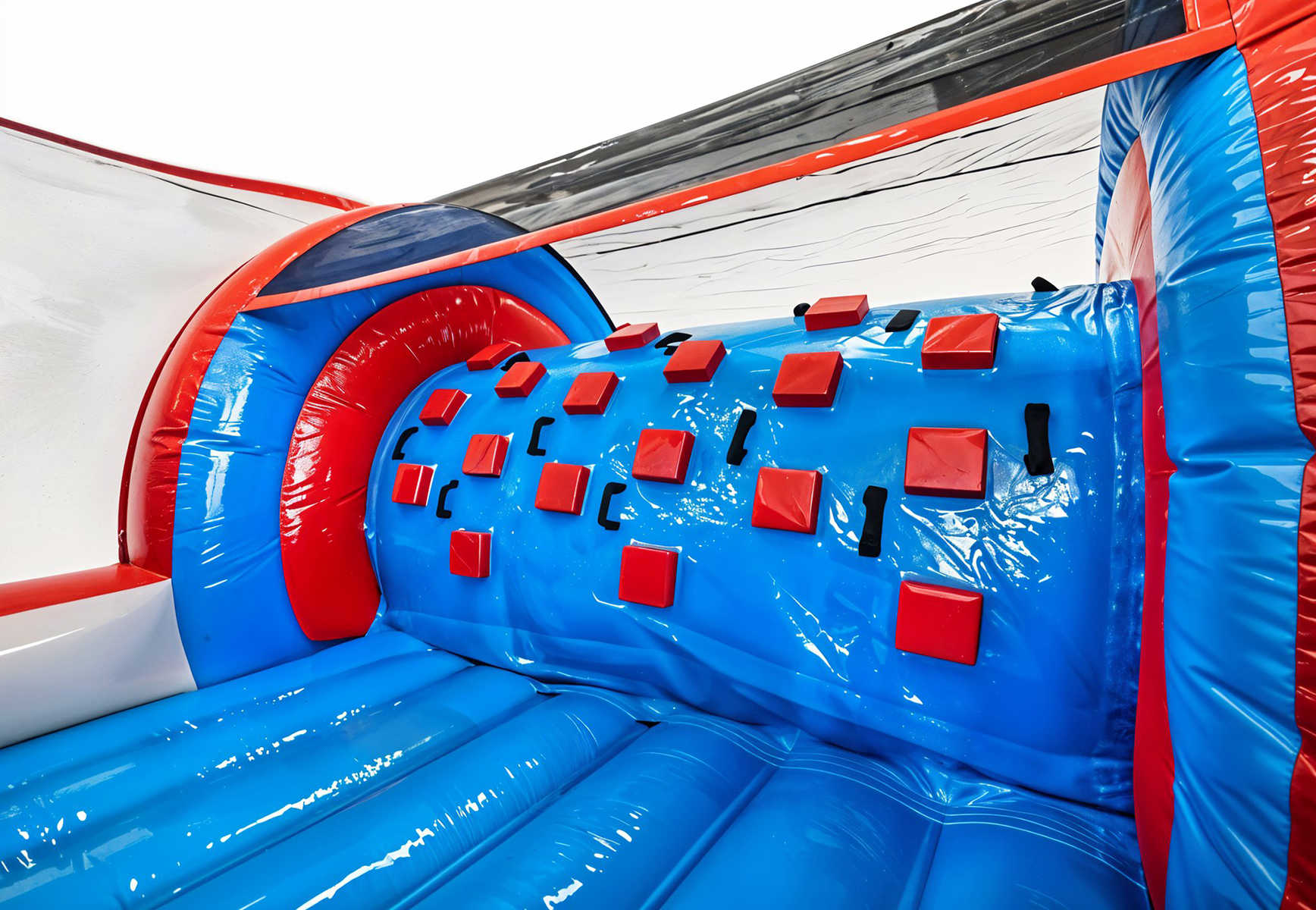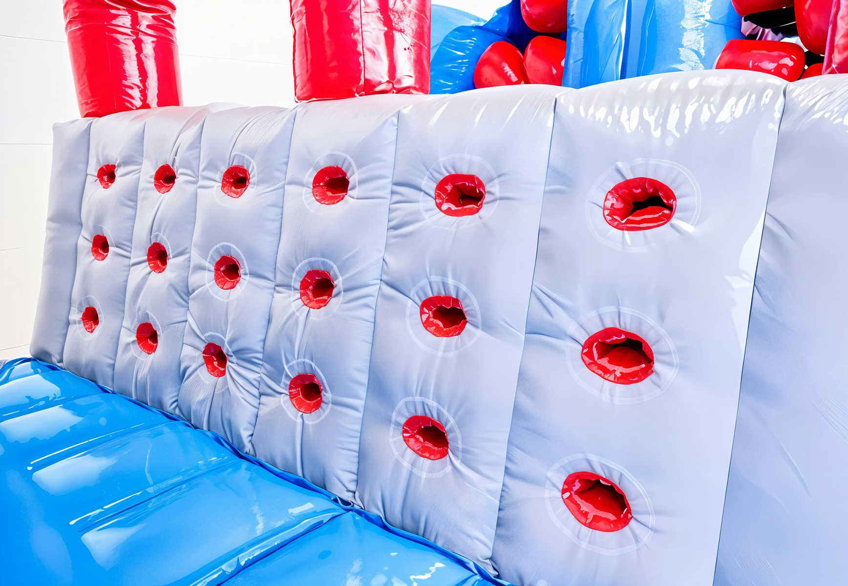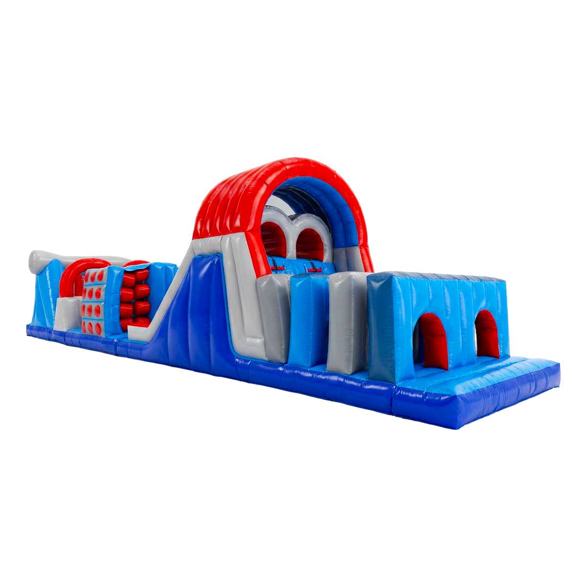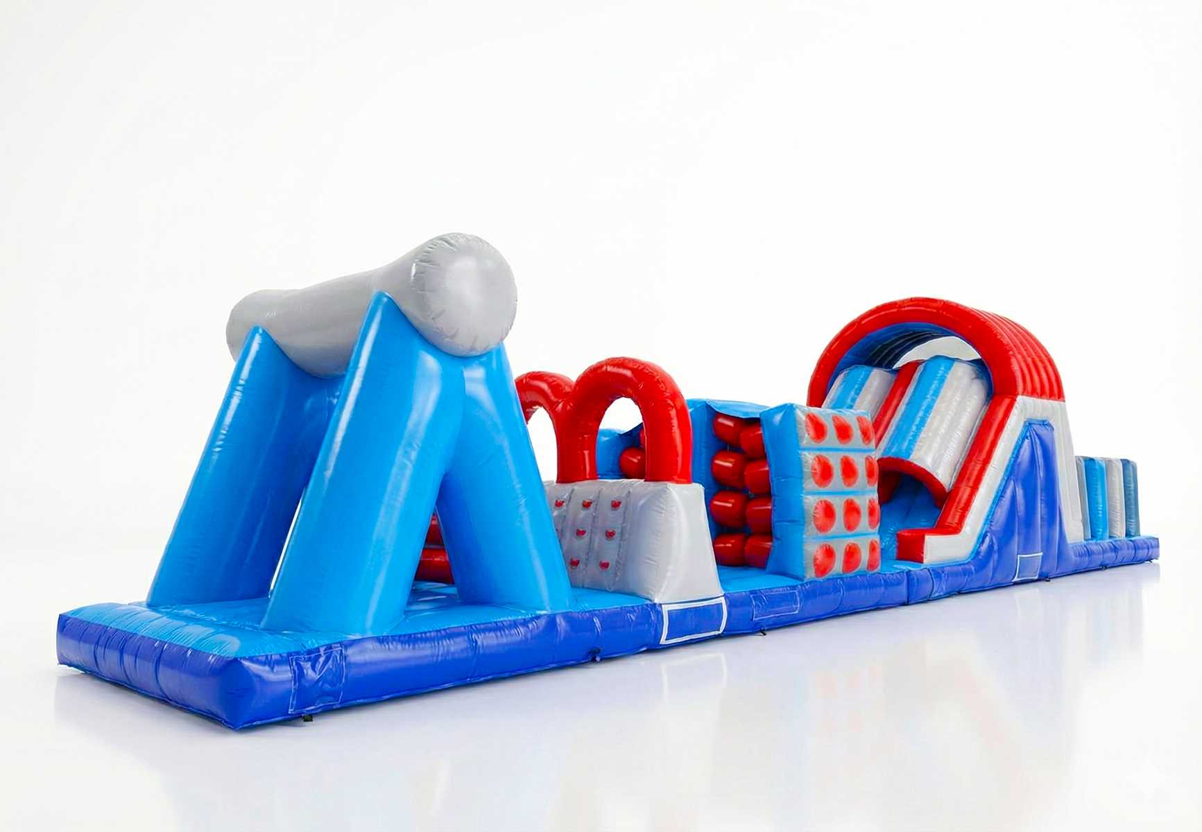 Стильный дизайн в ярко-синей, красной и серой палитре моментально бросается в глаза и выгодно выделяется на фоне других аттракционов. Полоса привлекает как малышей, так и подростков, идеально подходя для массовых мероприятий, спортивных праздников и коммерческих игровых зон.