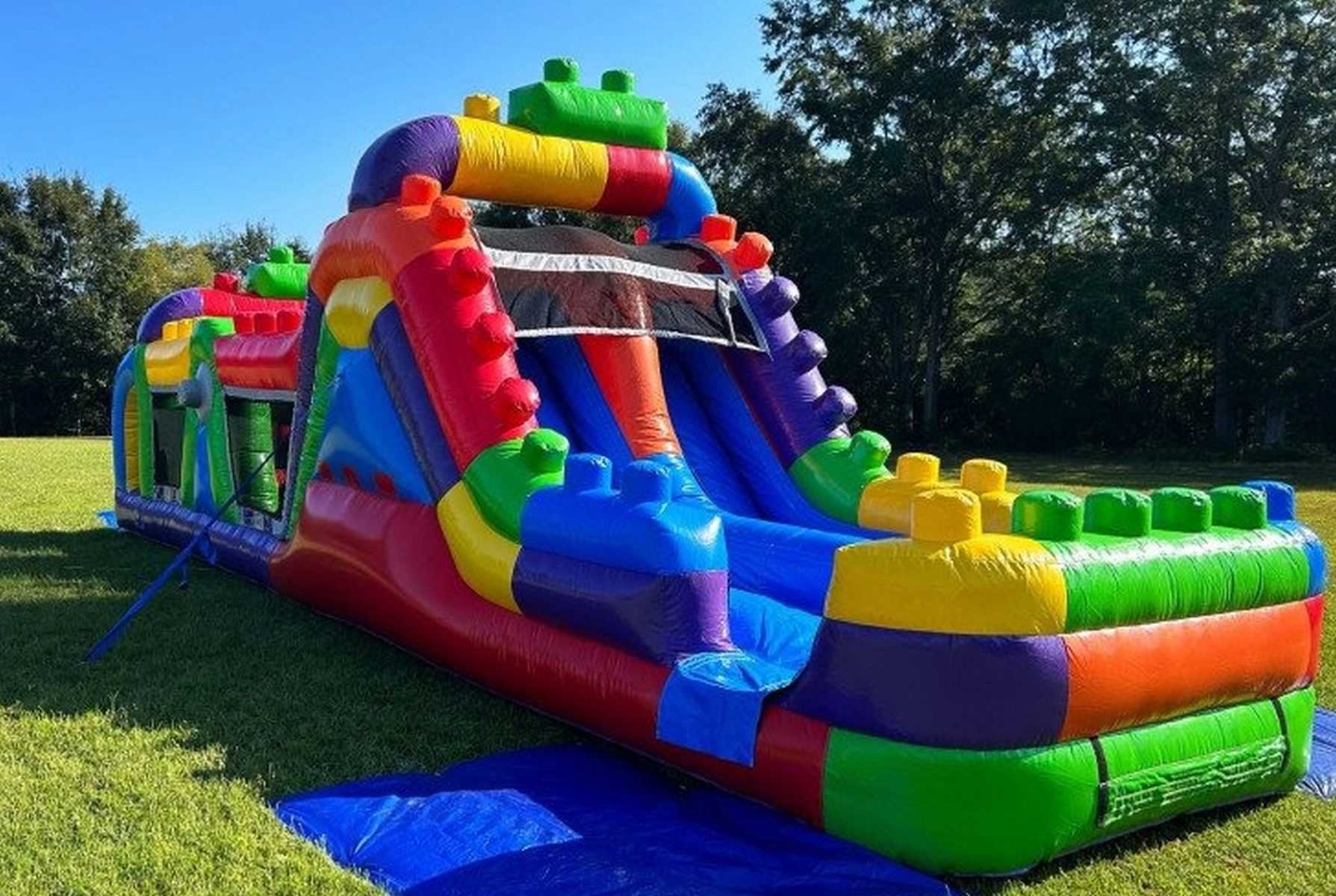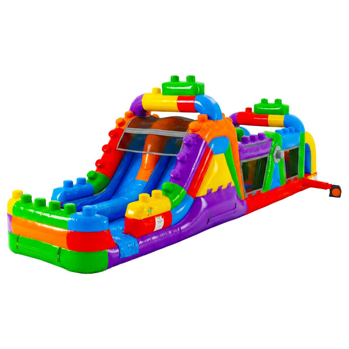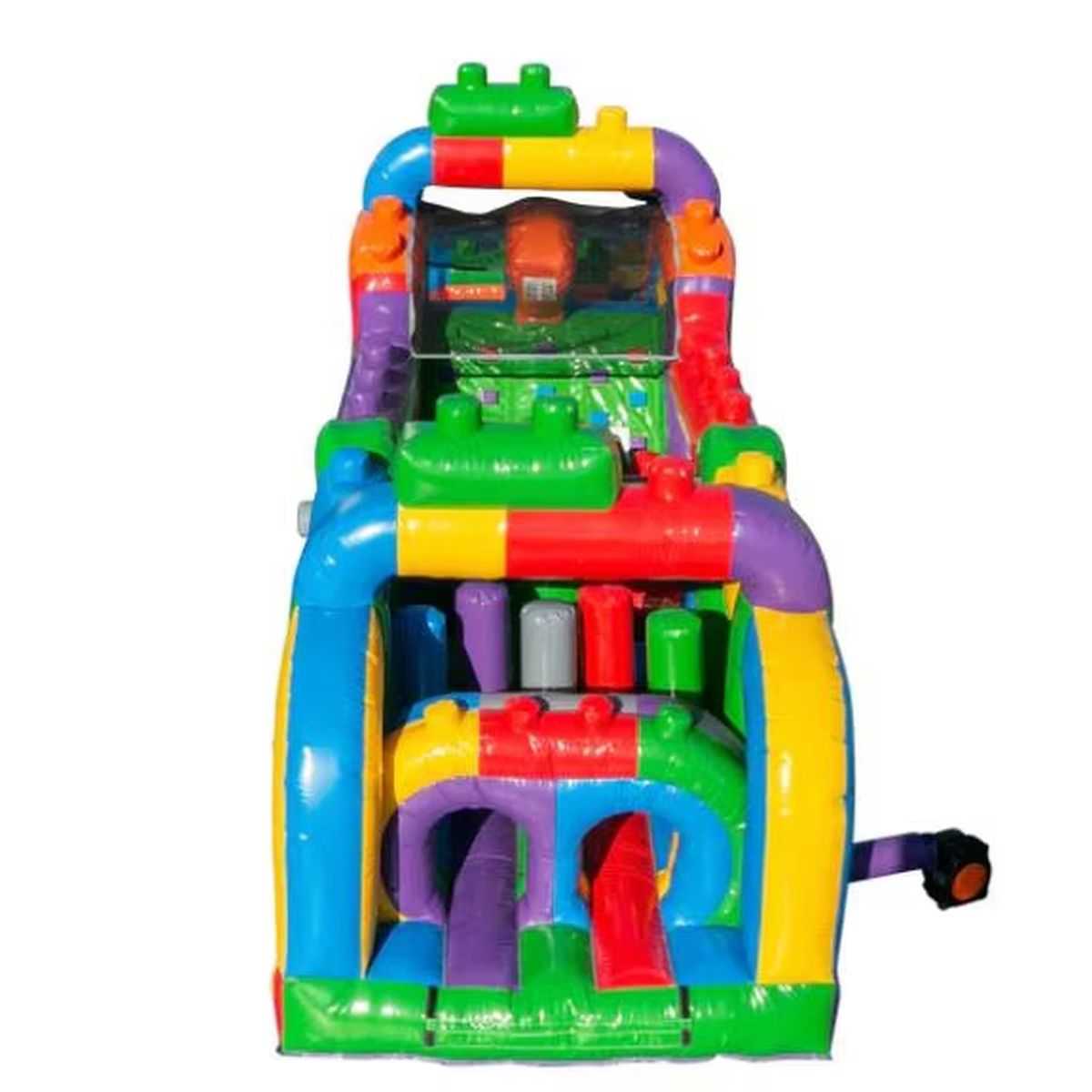 Надувная полоса препятствий для бизнеса «Конструктор» — это красочная и привлекательная конструкция длиной 15 метров, шириной 3 метра и высотой 4 метра. Она разработана специально для активных детских игр и способна стать центральным элементом любого праздника, фестиваля, спортивного мероприятия или интерактивной зоны. Благодаря тематическому дизайну, напоминающему детали конструктора, изделие мгновенно привлекает внимание детей и взрослых.