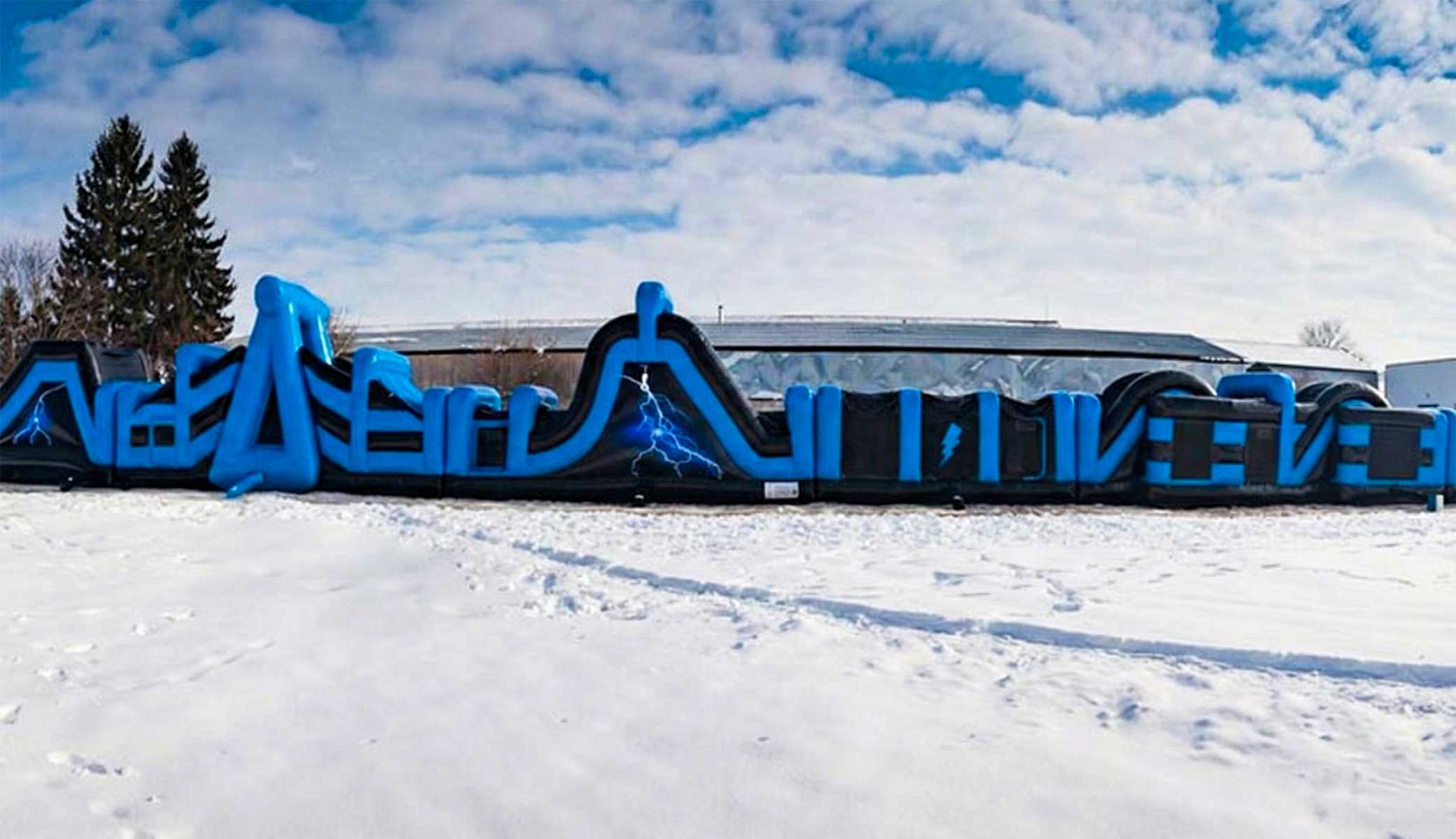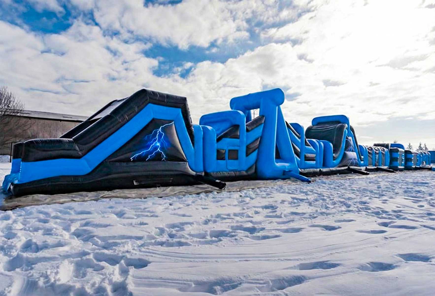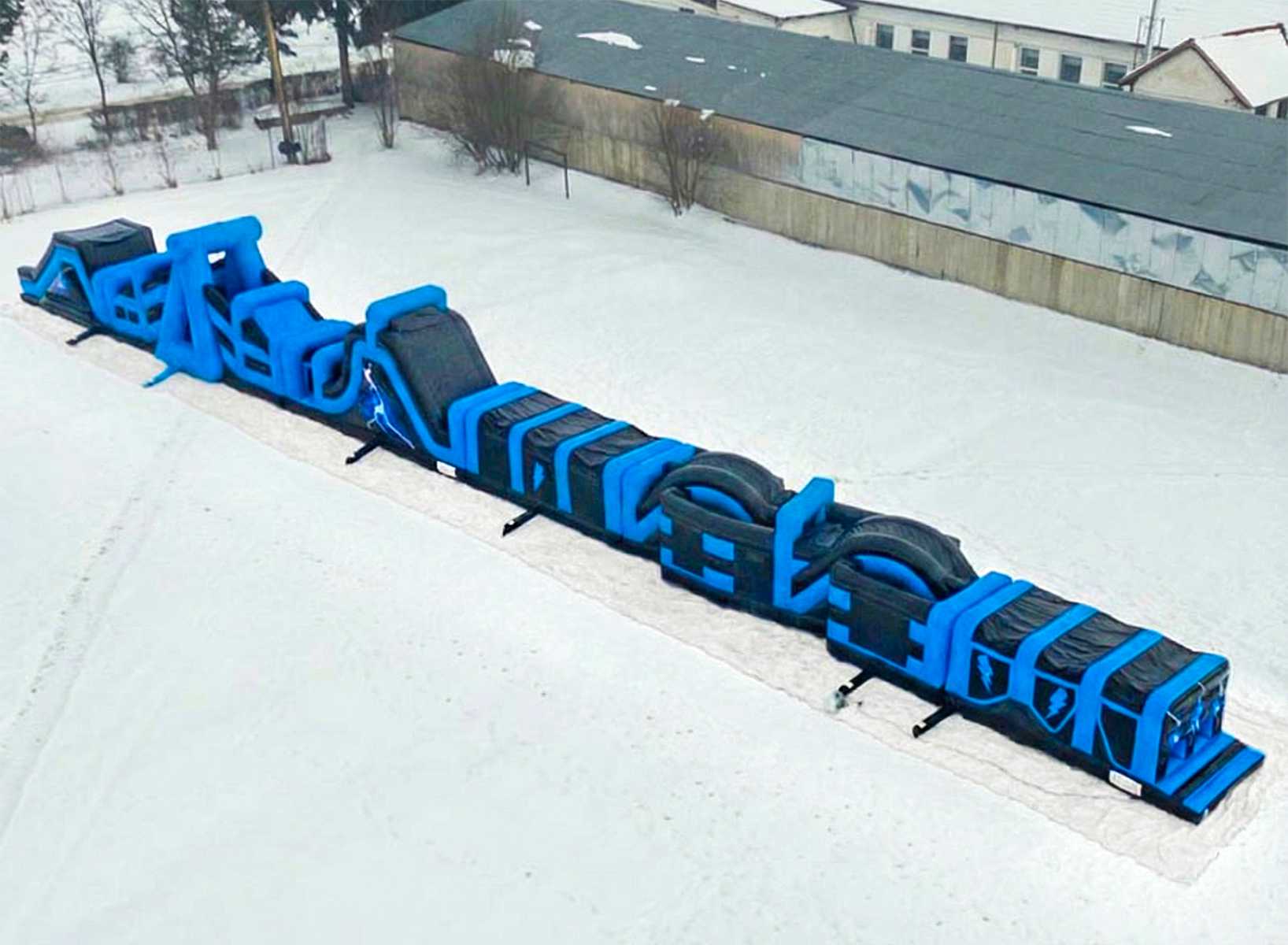 Благодаря наличию горки, препятствий и тоннеля, участники получают не просто физическую активность, а настоящее приключение. Полоса оформлена в стильной голубо-чёрной палитре и обладает визуальной привлекательностью, которая притягивает взгляды с первой секунды. Это делает «Молнию» отличным маркетинговым элементом любого мероприятия.