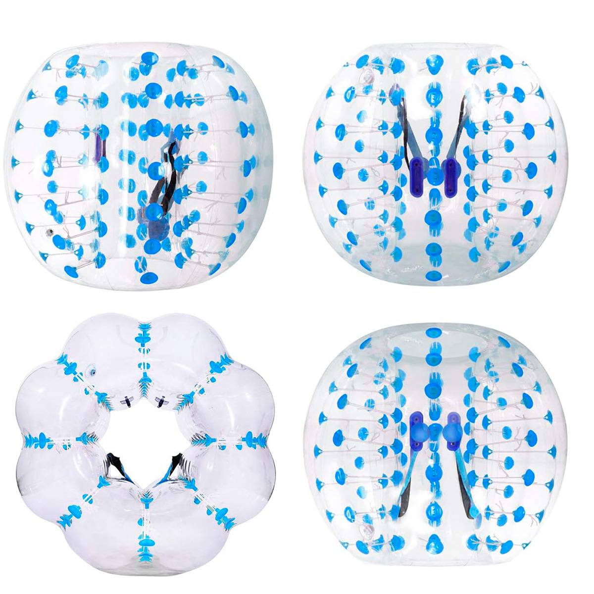 Бампербол — это прочный надувной шар, который игроки надевают на себя, оставляя ноги свободными. Внутри шара находятся ручки и ремни безопасности, фиксирующие человека и позволяющие ему уверенно двигаться. В таком снаряжении можно бегать, прыгать, сталкиваться с другими участниками, переворачиваться и даже кувыркаться без риска получения серьезных травм.