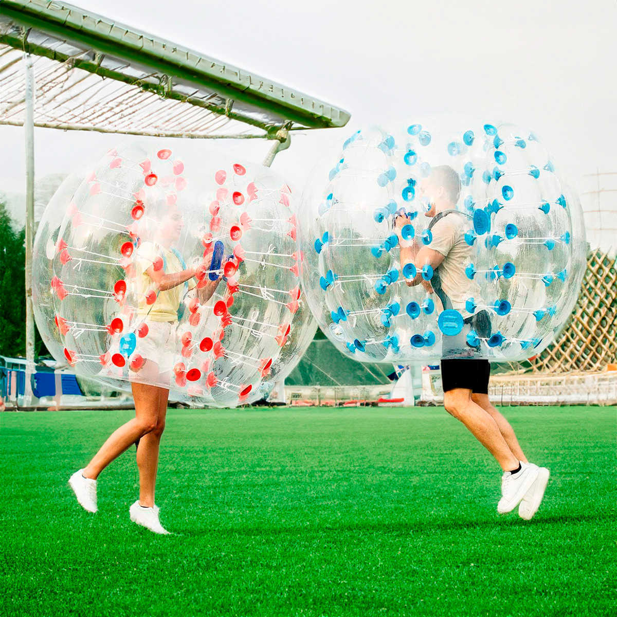 Одним из главных преимуществ бампербола является его безопасность. Надежная конструкция из прочного ТПУ защищает игрока от ударов при столкновениях и падениях. Внутри шара расположены регулируемые ремни и удобные ручки, позволяющие зафиксироваться в оптимальном положении.