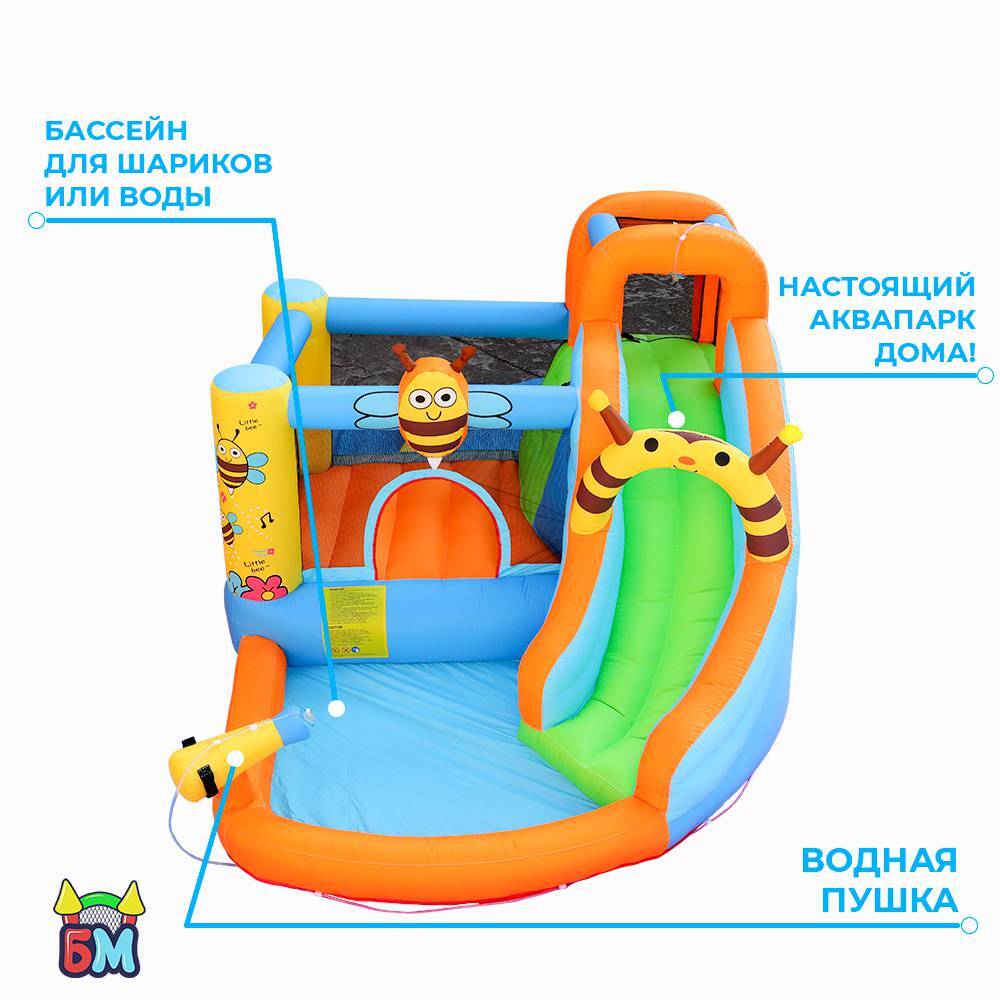 Водяная пушка, скат с горки, яркий бассейн и дружелюбные пчёлки превращают обычный день в настоящее приключение. Где бы вы ни установили батут — на даче или у себя в квартире — он сразу станет любимым развлечением вашего ребёнка!