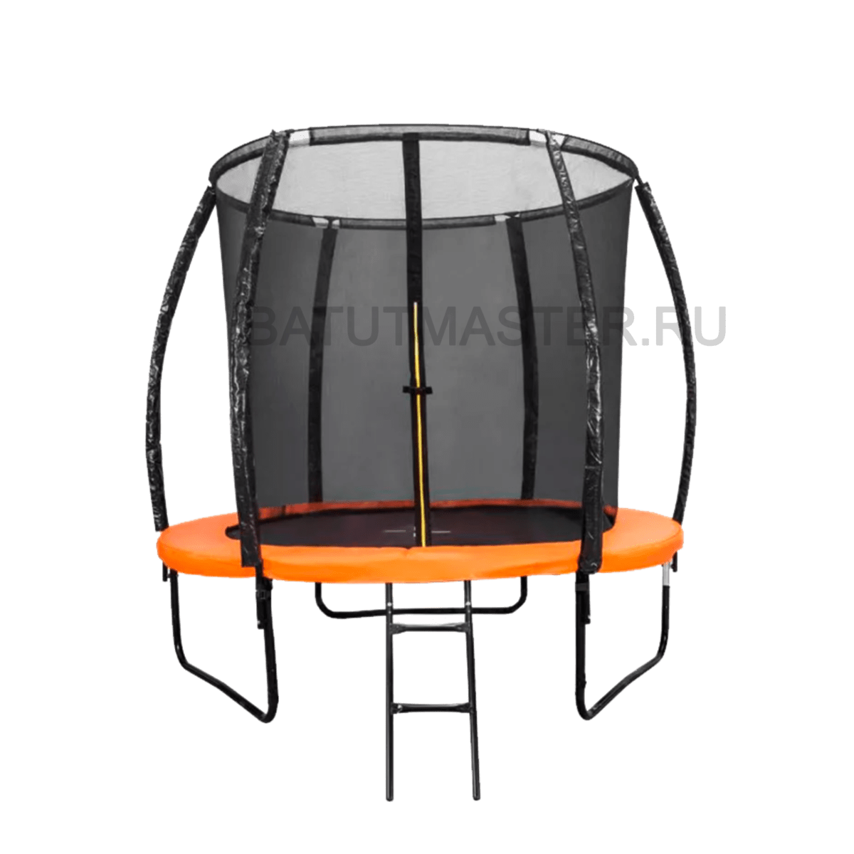 Фасад батута оборудован внизу лестницей, а внутри защитной внутренней сетки застежкой-молнией. Как только застежка будет закрыта, сетка станет одним целым полотном.