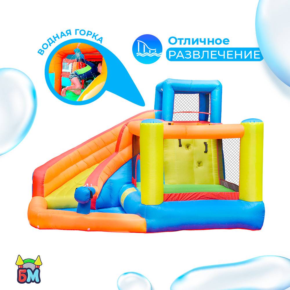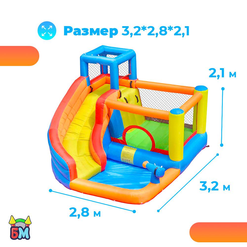 Большой надувной батут для дома и дачи с горкой и бассейном для воды и шариков "Малыш" 310x280x210 см.