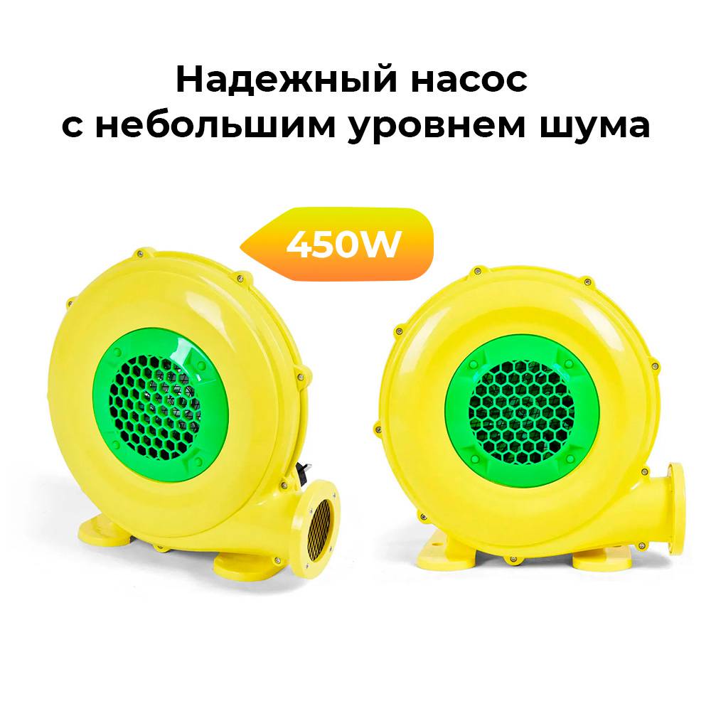 НАСОС ПРИЛАГАЕТСЯ К БАТУТУ В ПОДАРОК. Батут требует постоянной работы насоса. Для выхода воздуха из оболочки предусмотрены редкие выпускные отверстия размером 2*2 мм, поэтому батут "не лопнет" :)