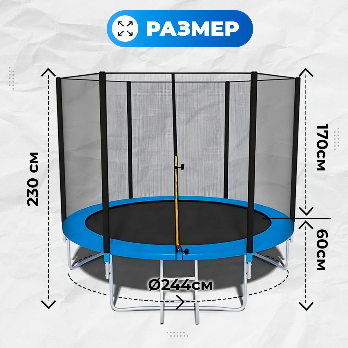 • Большой диаметр – 8 футов, позволяет свободно прыгать на батуте детям и взрослым;