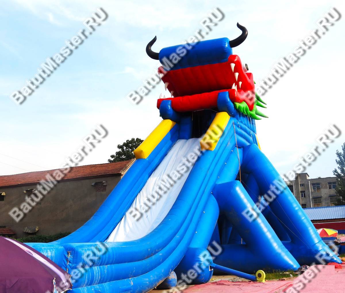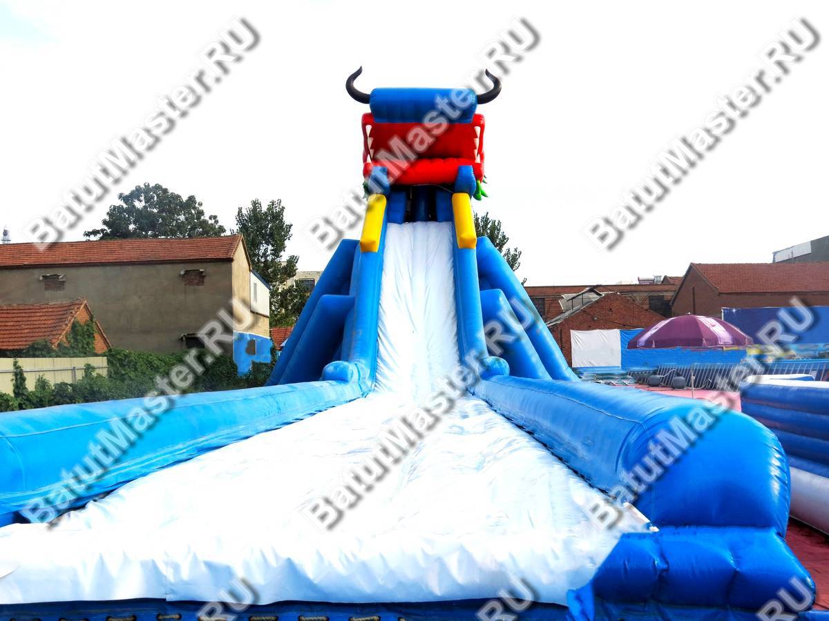 Надувной батут - горка непременно доставит удовольствие детям. Это самая большая арена для спуска. Задает тематику комплексу большой модуль в виде головы дракона. Сзади имеется достаточно места для подъема, и даже при неудачной попытке забраться на верх горки дети не получат травму, так как предусмотрена зона для падения, она полностью надувная и по бокам окружена высокими бортами. На протяжении всего спуска детей также будут защищать надувные борта. Спускаться вниз можно даже используя тюбинг или коврик, это обеспечит еще большее скольжение. В зоне спуска имеется большое поле для безопасного торможения. Комплекс развивает выносливость, силу у детей, а также координацию движений.Коммерческий батут-горка дополнит игровую зону в развлекательном центре для детей. Выполнен из качественного ламинированного материала ПВХ, не выгорает под солнечными лучами и не сжимается от низкой температуры. Простой и неприхотливый в уходе. Собирается и разбирается за считанные минуты. В комплекте имеется оборудование для сборки и эксплуатации, включая мощный насос. Предназначен для бизнеса. Используется как отдельный элемент.