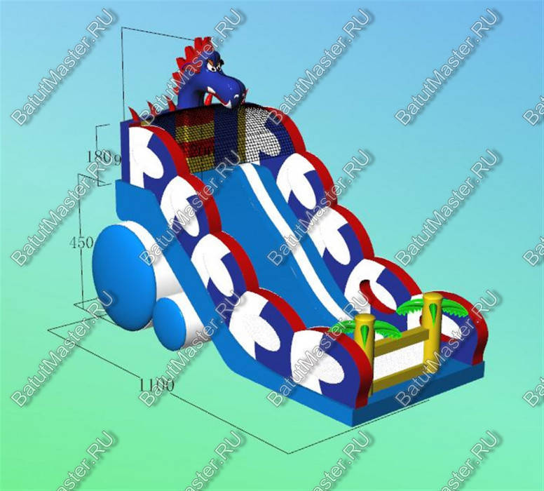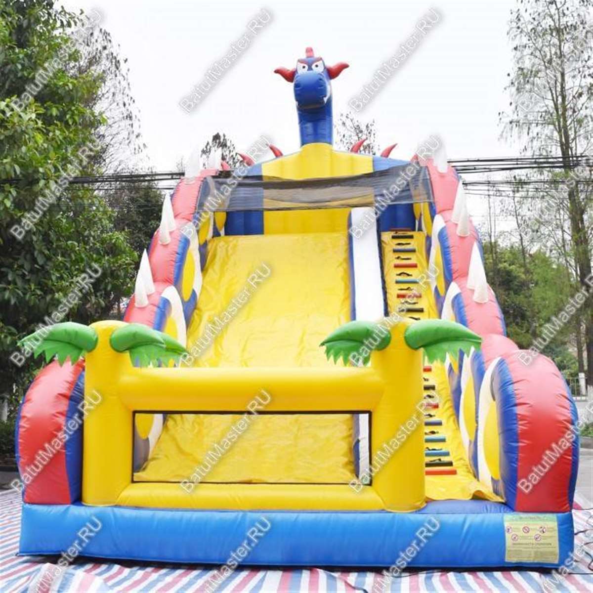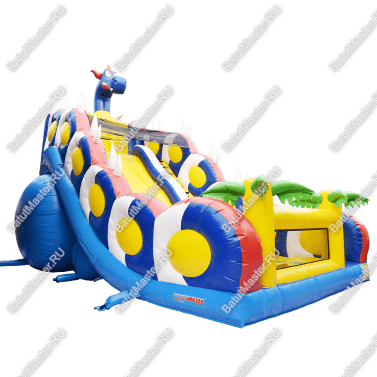 Надувной батут для бизнеса «Дракон синий» просто необходим детям для развития и веселья. Значительных размеров аттракцион вмещает в себя целую команду. Здесь имеется широкая и большая горка, а это значит, что скатываться с нее будет так весело всем сразу. Стоит отметить, что на ней имеется специальный материал, который обеспечивает еще большее скольжение. Удобный подъем с широкими мягкими щитами даст возможность забираться на самую вершину совершенно безопасно и к тому же удобно.