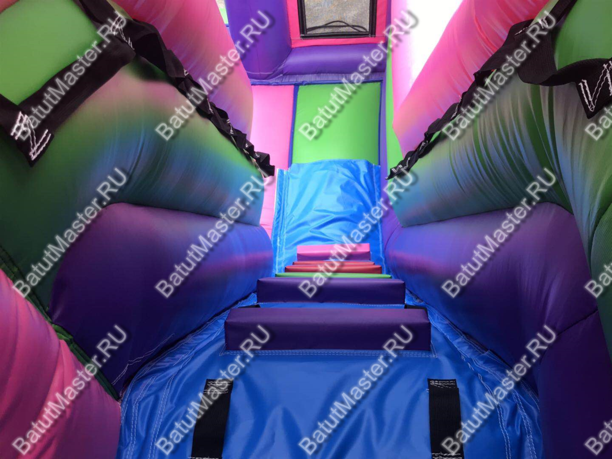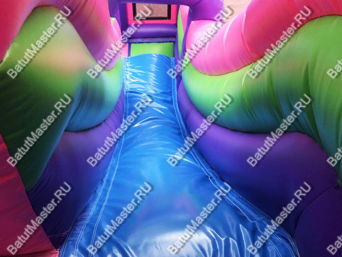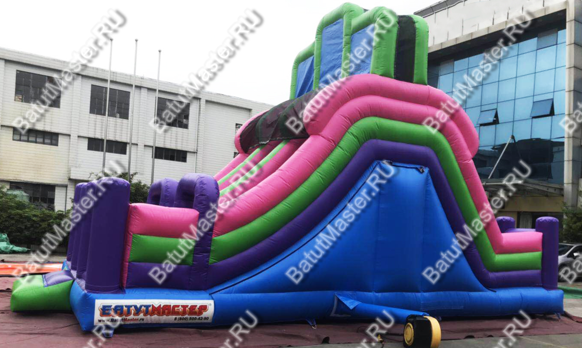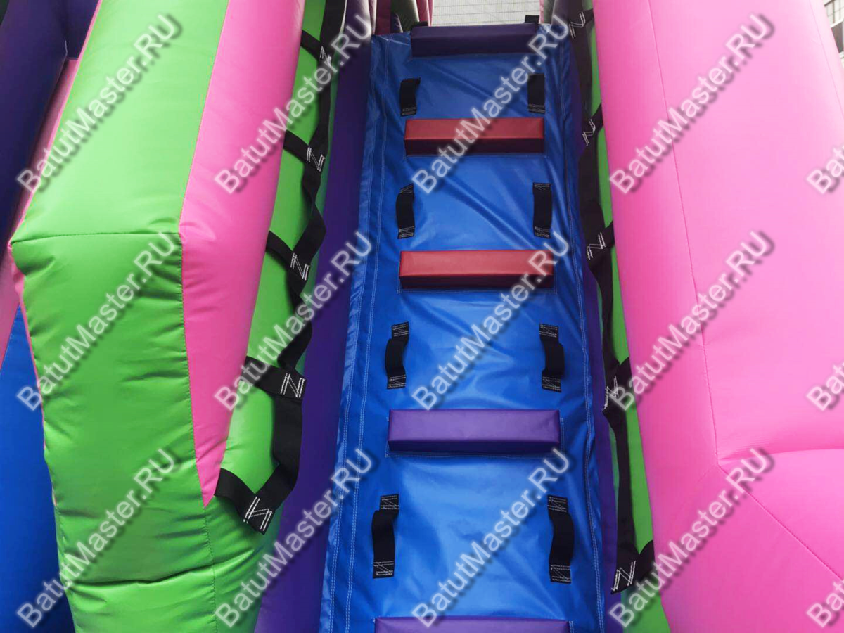 Стоит отметить безопасность батута: по краям горки находятся надувные высокие борта, чтобы дети не выпали наружу, а также не мешали друг другу при подъеме.
