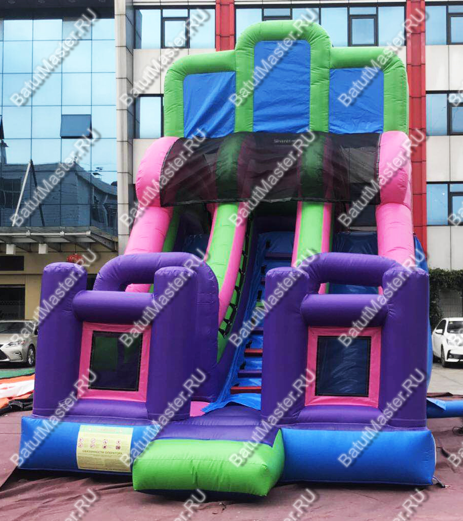 Невероятно интересный, яркий и функциональный надувной батут – горка «Двойной эффект 3» станет любимым местом времяпровождения у детей разного возраста. Он оснащен горками и подъемом с двух сторон, что является неоспоримым преимуществом, ведь спускаться можно одновременно нескольким детям совершенно не мешая друг другу.