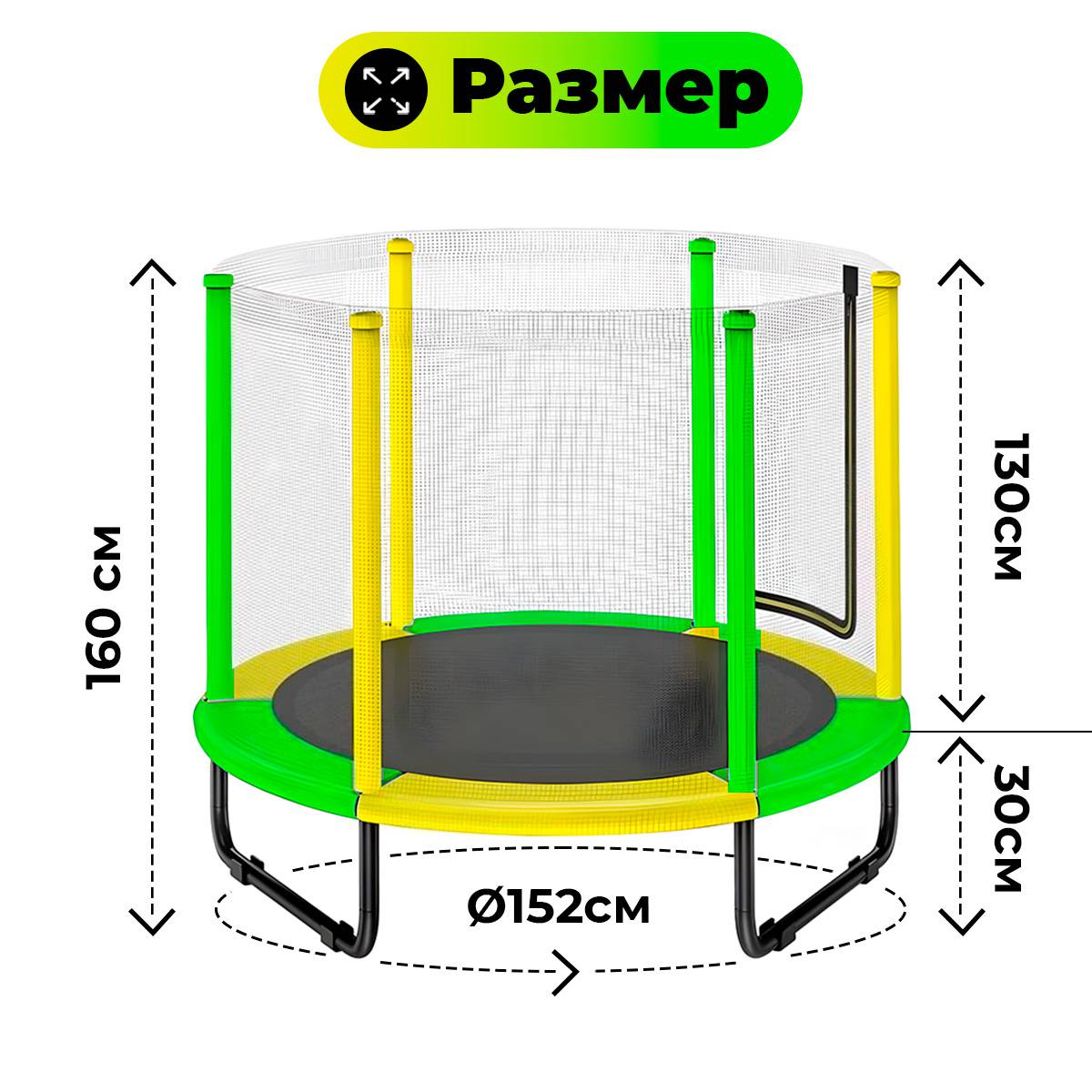 - Комплектация: Батут, защитная сетка, инструменты для сборки.