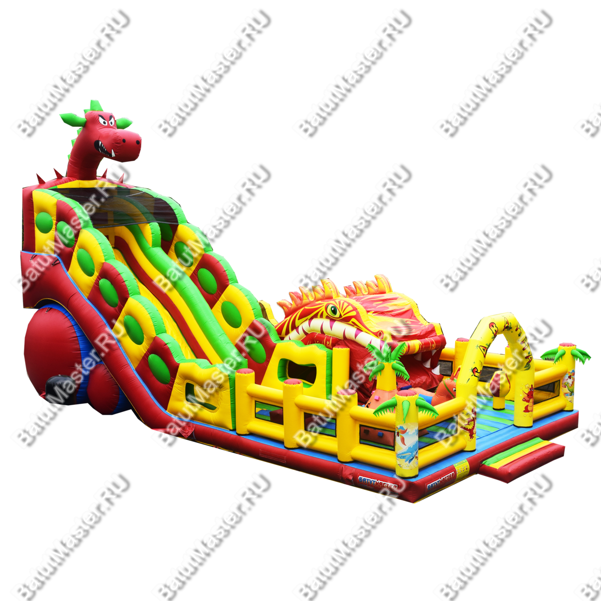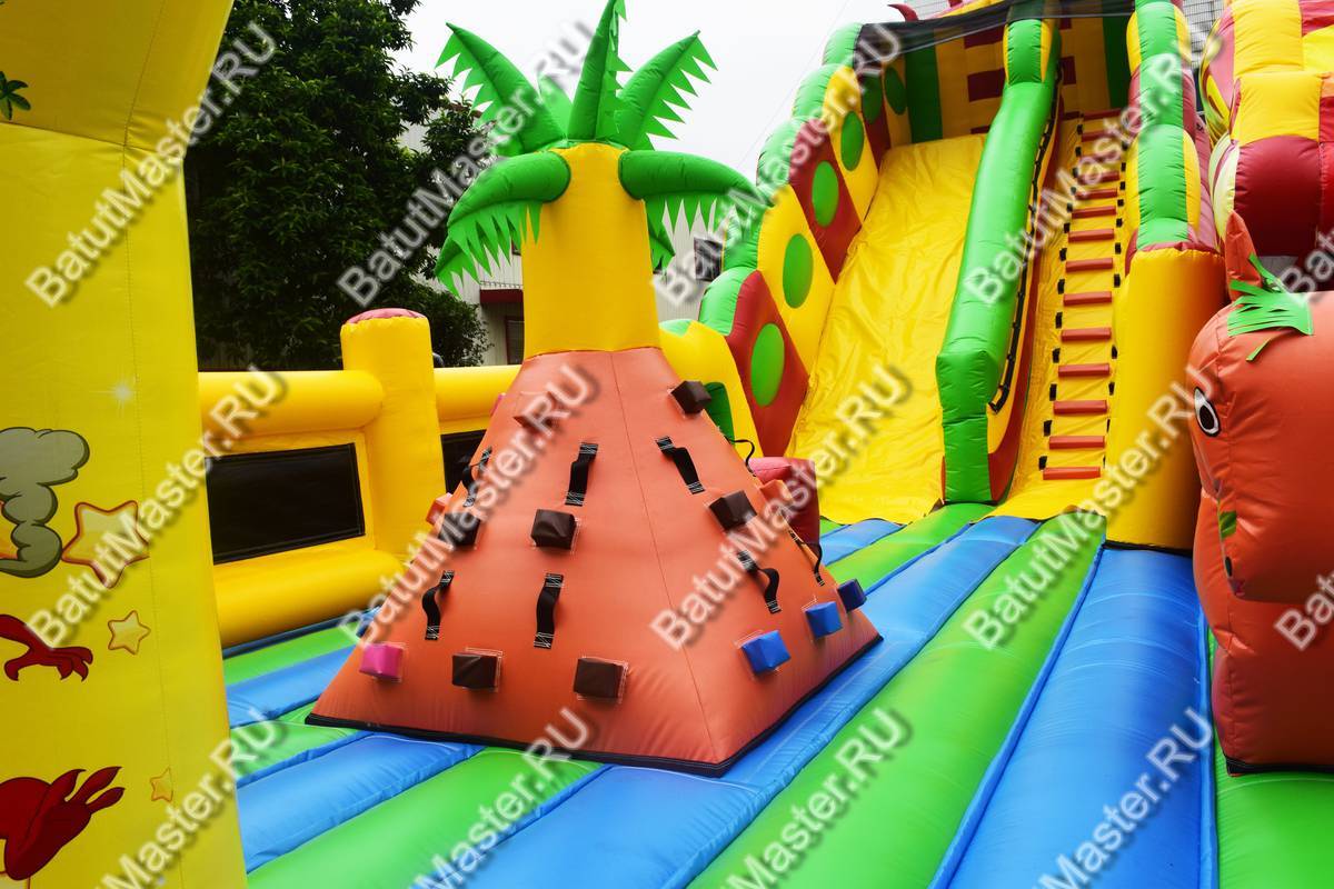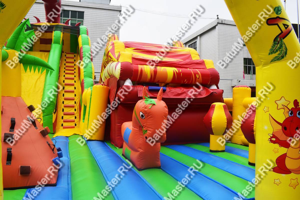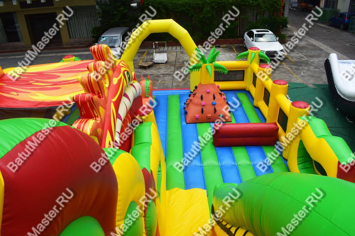 Животные саванны с нетерпением ждут юных первооткрывателей на арене веселых приключений. Здесь дети получат массу положительных эмоций и незабываемых впечатлений. Большой надувной батут вместил в себе все самые интересные и современные модули. Главным атрибутом комплекса является большой дракон, в пасть которого можно забраться и спуститься вниз. Здесь есть скалодром, горка, а на горке возвышается забавный маленький дракоша. Вместительное поле для прыжков по достоинству оценят мальчишки и девчонки. На нем можно весело кувыркаться, бегать и сколько угодно прыгать. Снаружи батут украшают надувные пальмы. Здесь все вокруг так интересно и хочется веселиться и искать приключения. Яркие детали и современное наполнение батута подарит радость. Коммерческий батут выполнен из особо прочного, ламинированного поливинилхлорида. Такой материал не боится солнечных лучей и минусовой температуры. Рассчитан на длительную эксплуатацию. Это отличный вариант для бизнеса. Предпринимателям можно установить его как в помещении, так и на открытом воздухе и начать зарабатывать без дополнительных вложений. Он украсит территорию развлекательного комплекса, парка, гостиницы.