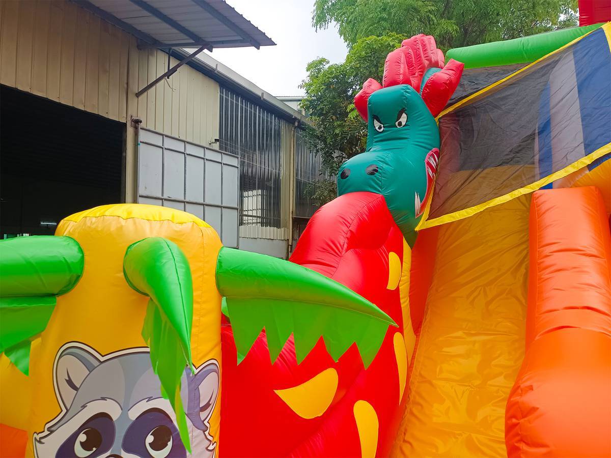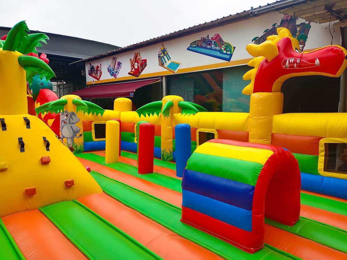 В его конструкции сочетаются горка, игровые фигуры, туннель, отдельные игровые зоны. Здесь же декоративные фигуры: три головы Змея Горыныча, пальмы. Весь комплекс огражден надувными барьерами и стенками. За время пребывания на аттракционе дети могут перемещаться из одной игровой зоны в другую. Они на скорости скатываются вниз по туннелю, по лестнице карабкаются на горку, на нижних игровых площадках можно попрыгать, преодолевая препятствия. Детская фантазия подсказывает различные сказочные сюжеты, которые тут же обыгрываются.
