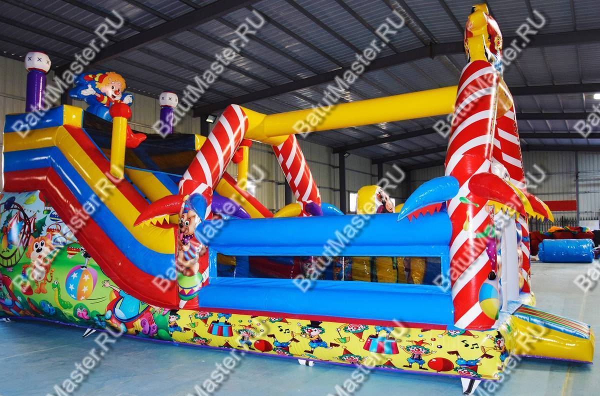 Снаружи надувной батут имеет окошки из сетки, чтобы родителям было видно, как играют малыши. Сверху большой горки находится веселый клоун, который и задает тематику атрибуту. Для бизнеса – это отличный вариант. Коммерческий интерес имеется у многих, к такому изделию, кто собирается открыть свое дело. Особенно важно отметить, что это не требует больших вложений, а окупается за считанные месяцы.