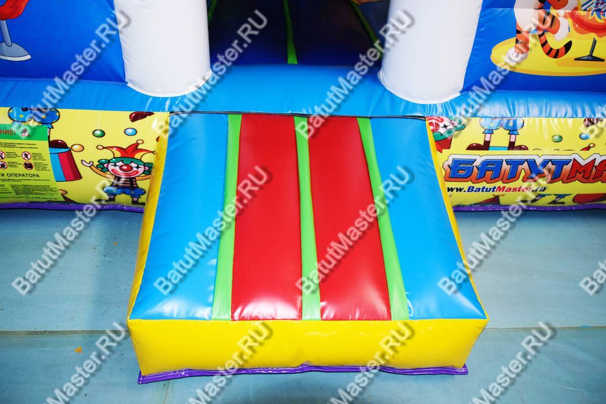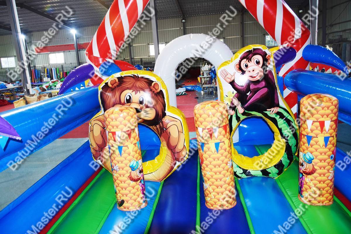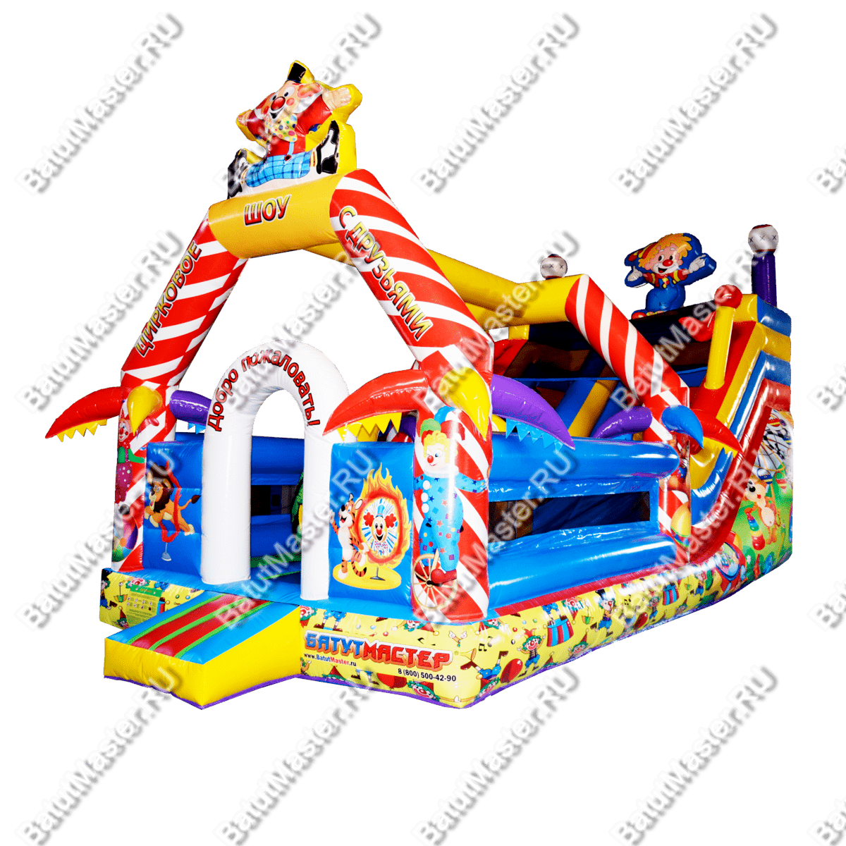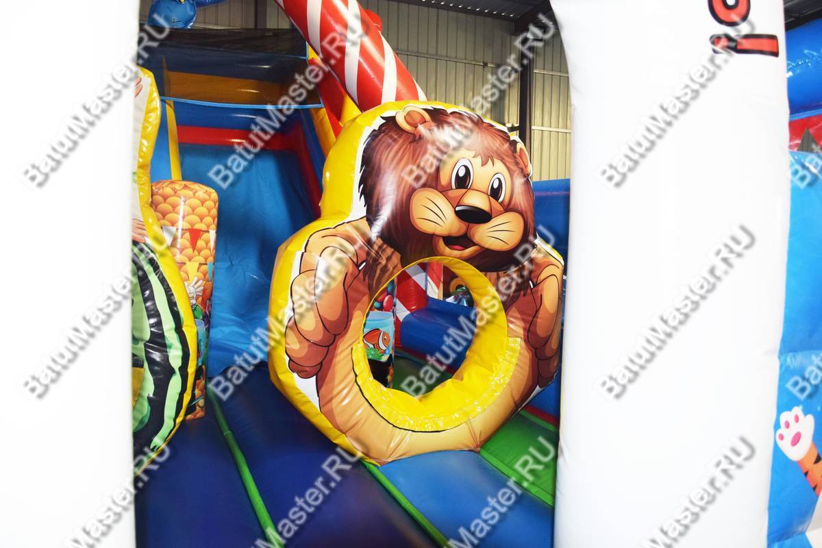 Игровой атрибут цирковое шоу – это невероятное исполнение, буйство ярких красок, здесь все притягивает взгляд и призывает к веселью. Надувной батут коммерческий для бизнеса внутри оснащен веселыми и забавными зверятами, которые словно держат в руках игровые элементы. Дети будут в восторге, зайдя на прыжковое поле. Мишки, обезьянки, рыбки, тигры конечно же клоуны будто находятся на цирковой арене и показывают представление.