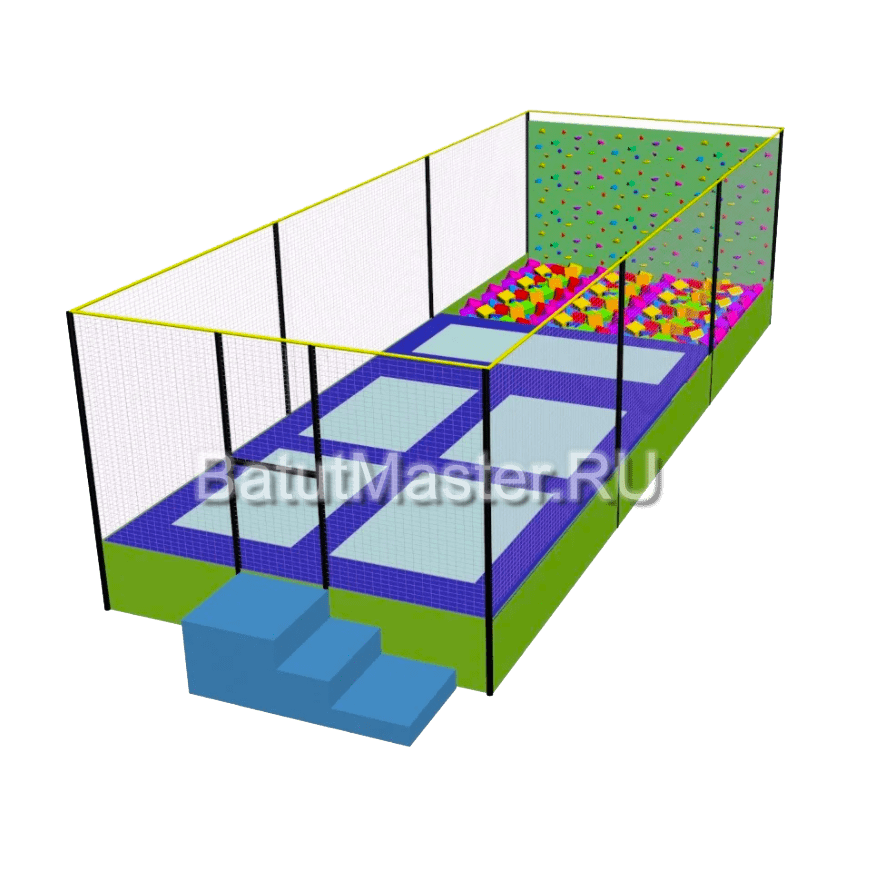 С внушительными размерами 13,8x4,6x3 м арена предлагает множество игровых сценариев. Несколько батутных секций позволяют детям одновременно прыгать и соревноваться, а поролоновая яма служит идеальным завершением прыжков или зоной для мягкого приземления. Скалодром на задней стене — это дополнительный интерактив, развивающий ловкость, координацию и силу. Всё это оформлено в стиле сказочного леса, где каждый уголок будто наполнен магией.