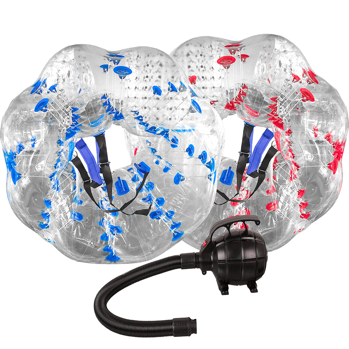 - 1 насос – оборудование для быстрого и удобного накачивания бамперболов, что экономит время и силы, а также упрощает процесс подготовки к игре.