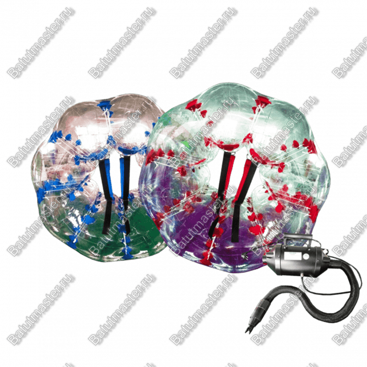 - 10 надувных бамперболов диаметром 1,5 метра – удобные, прочные, прозрачные шары с лямками и ручками.