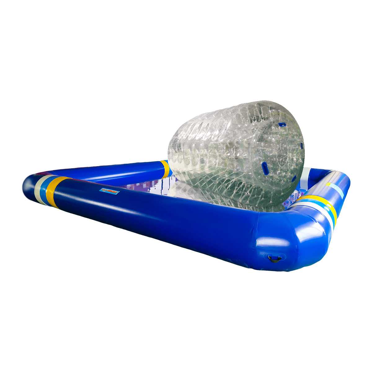 Бассейн наполняется водой, роллеры надуваются с помощью насоса.