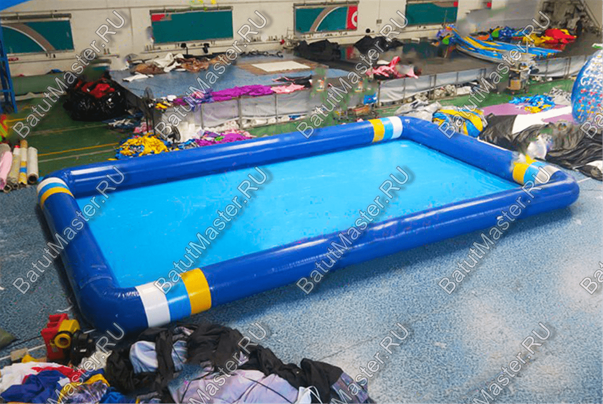 - Надувной бассейн 6x6 м – устойчивый, с усиленным дном и высокими бортами, исключающими расплескивание воды.