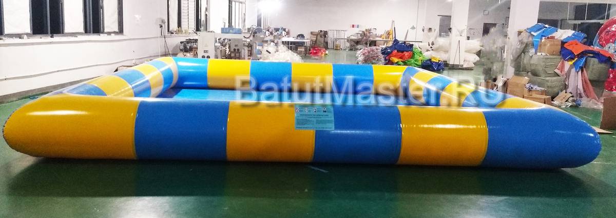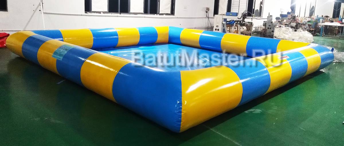 - Надувной бассейн 6x6м – устойчивый, с усиленным дном и высокими бортами, исключающими расплескивание воды.
