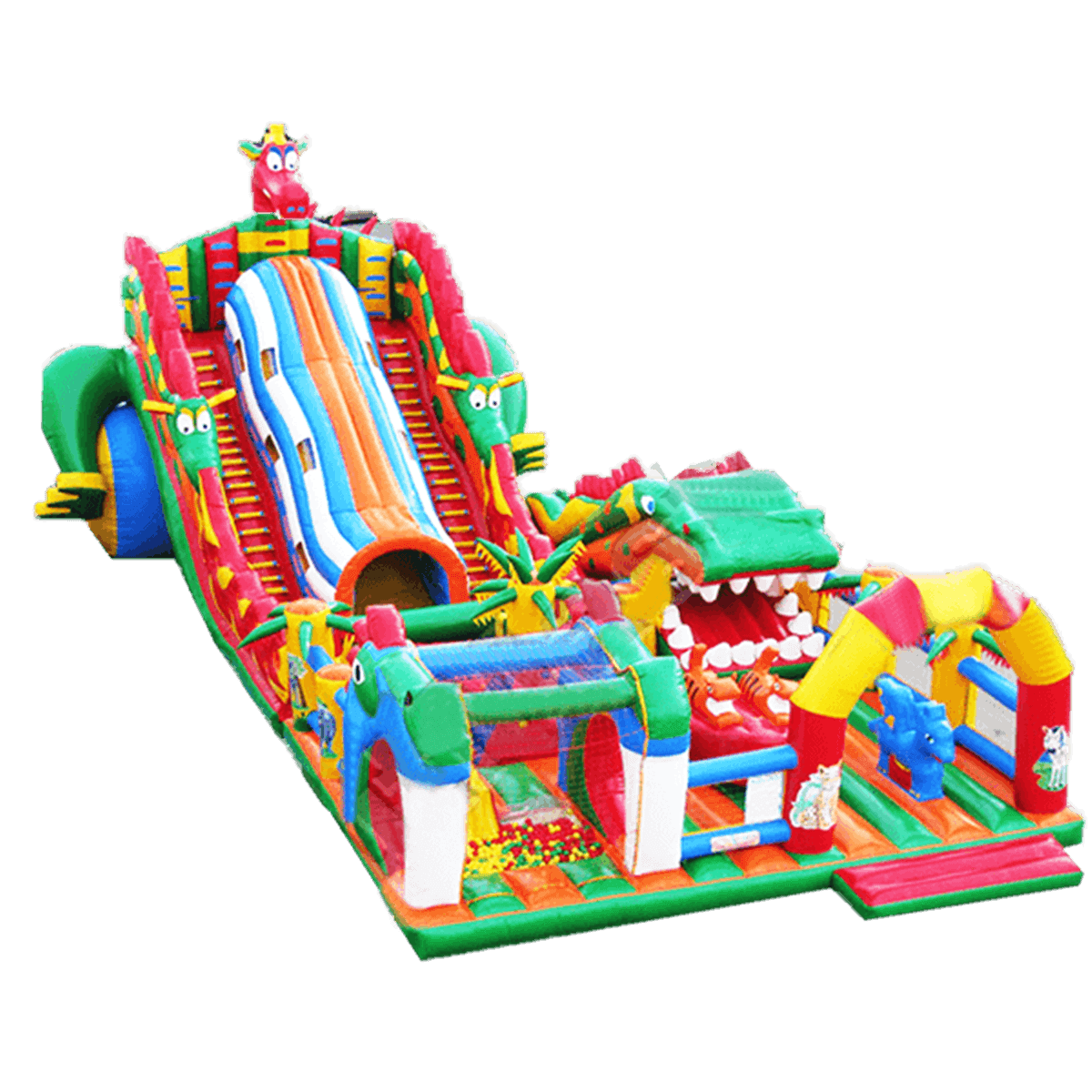 Огромный игровой комплекс надувная горка «Змей Горыныч 3» объединяет в себе все возможные батутные развлечения. Здесь собраны разные забавы для деток всех возрастов, что делает этот аттракцион универсальным и позволяет использовать его для всей семьи.