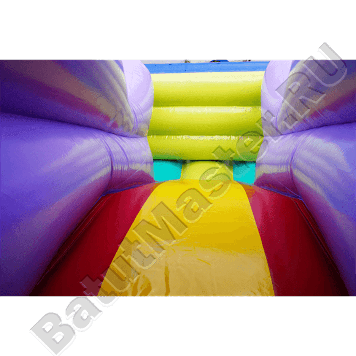Для безопасности малышей борта комплекса выполнены в виде высоких закрытых стенок, в некоторых местах имеются полупрозрачные отверстия, но они укомплектованы сеткой. Передний борт батута состоит из двух частей - открытого входа с защитным порожком безопасности впереди и защищенной цельной стенкой непосредствен перед спуском с надувной горки, что предотвращает ушибы и удары при съезжании с высоты.