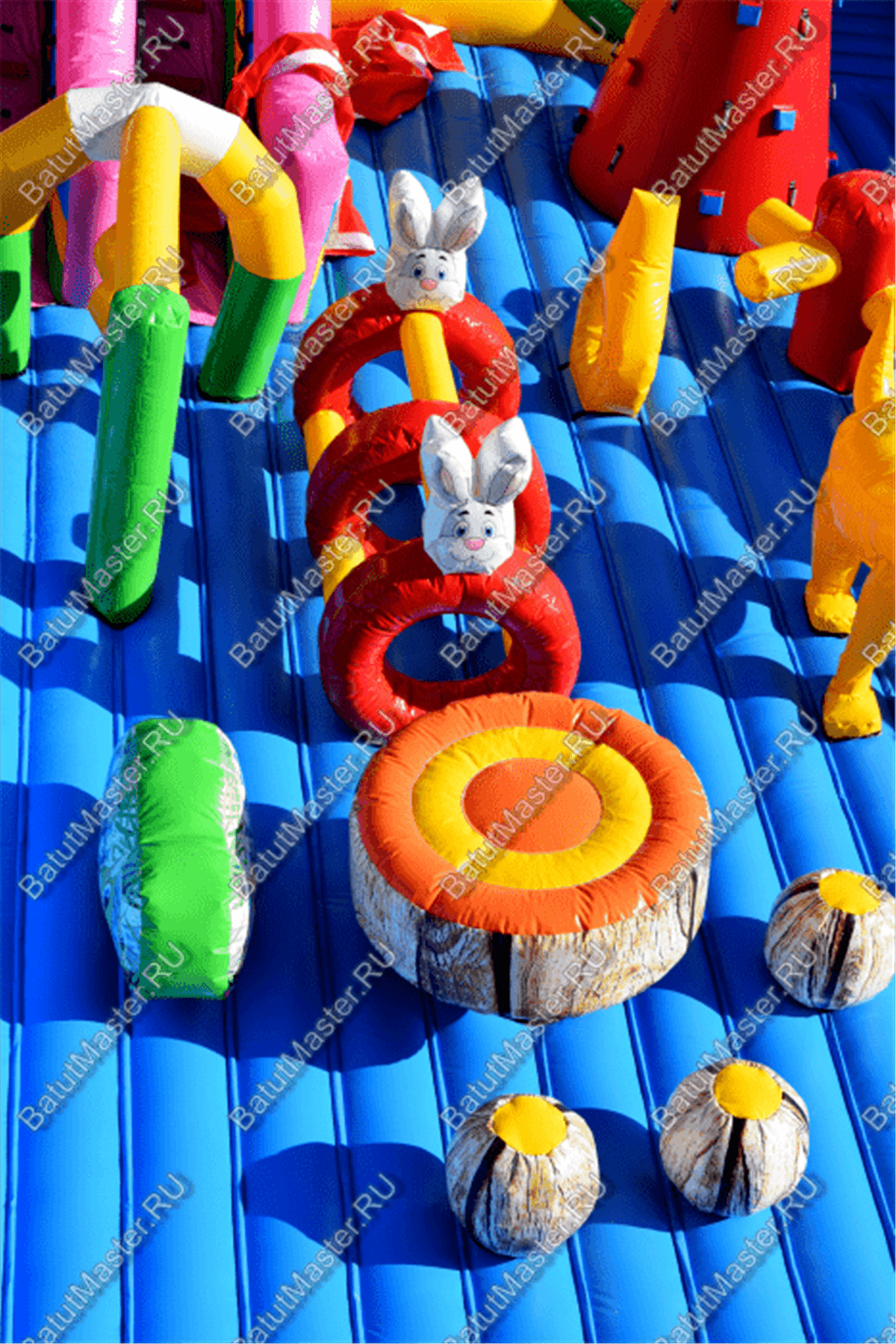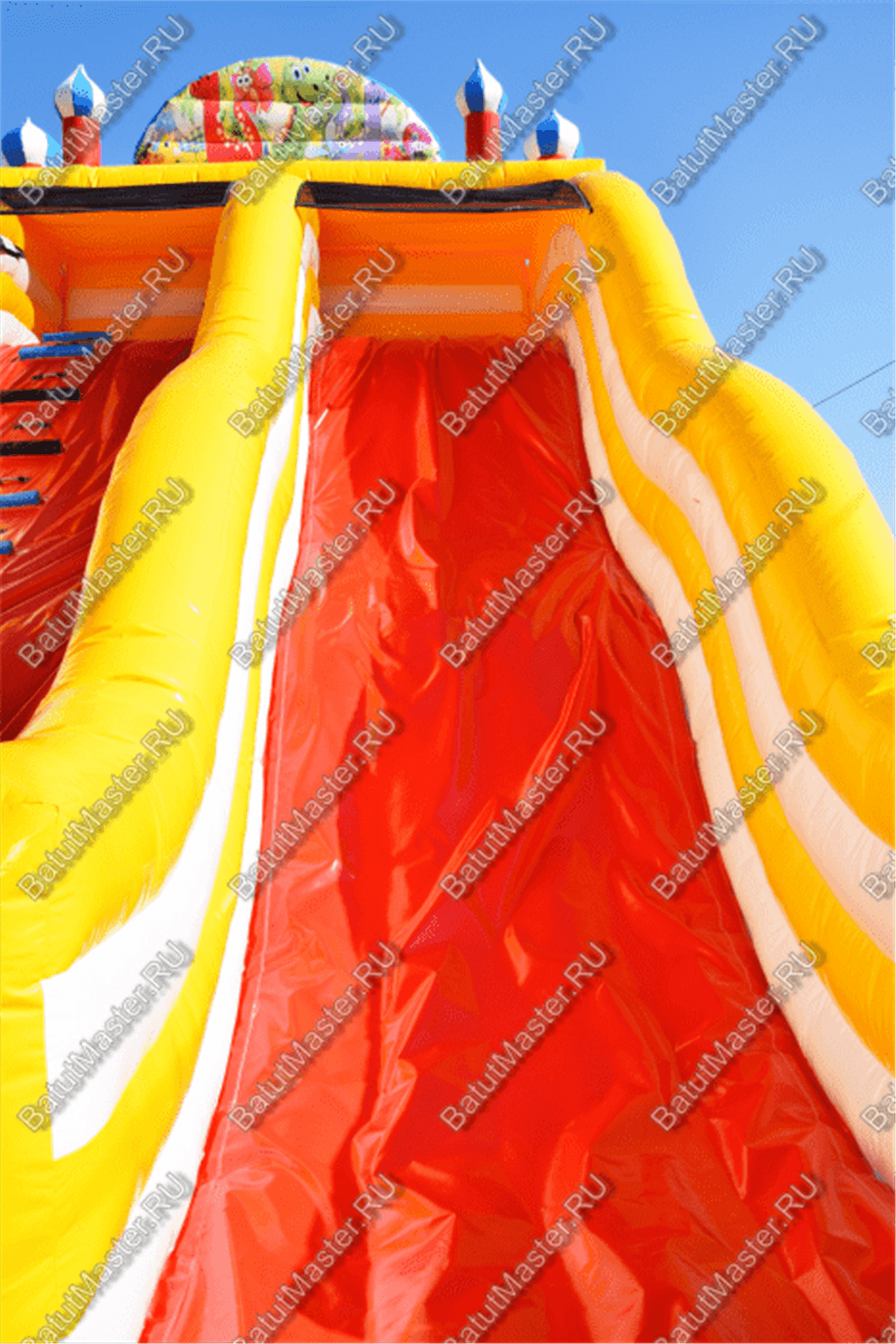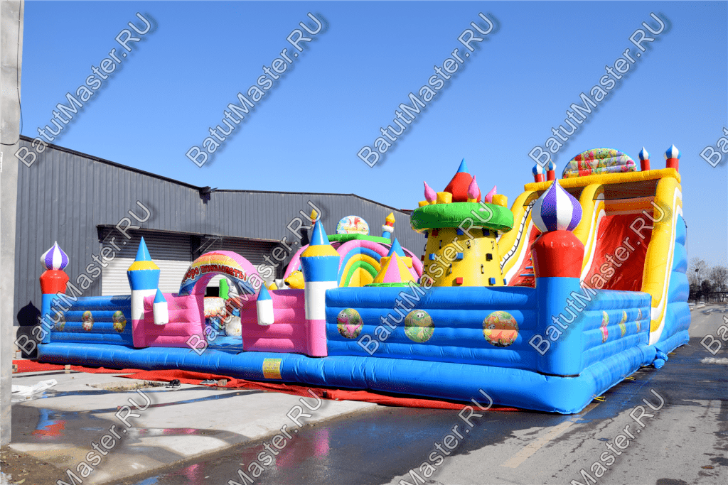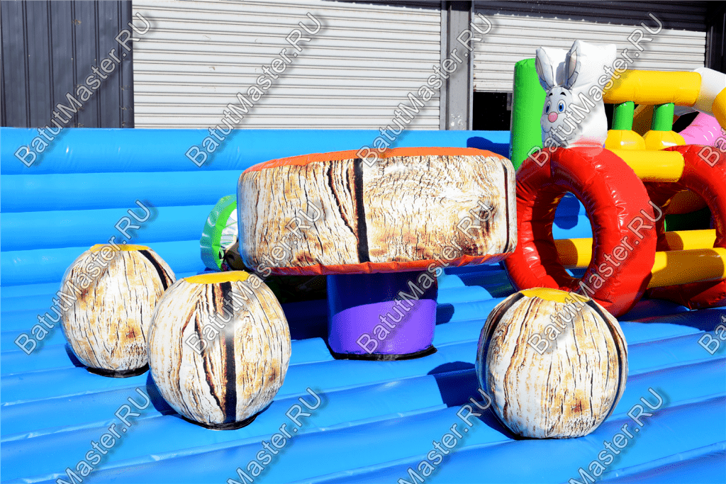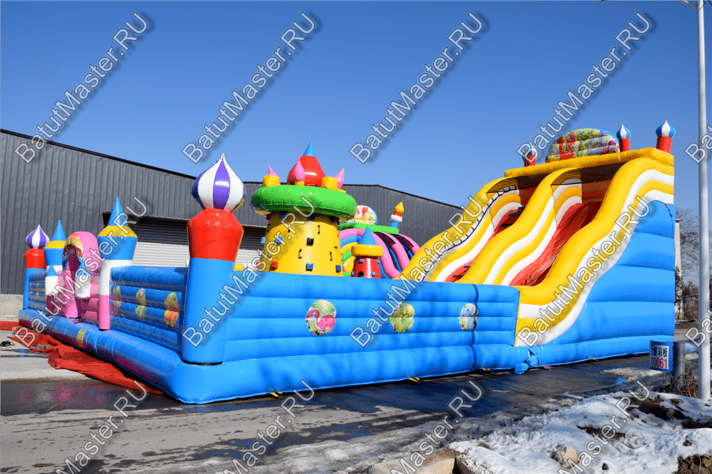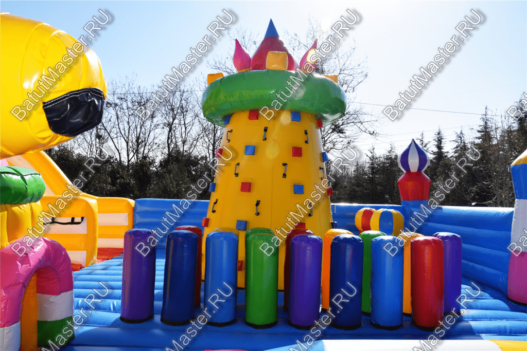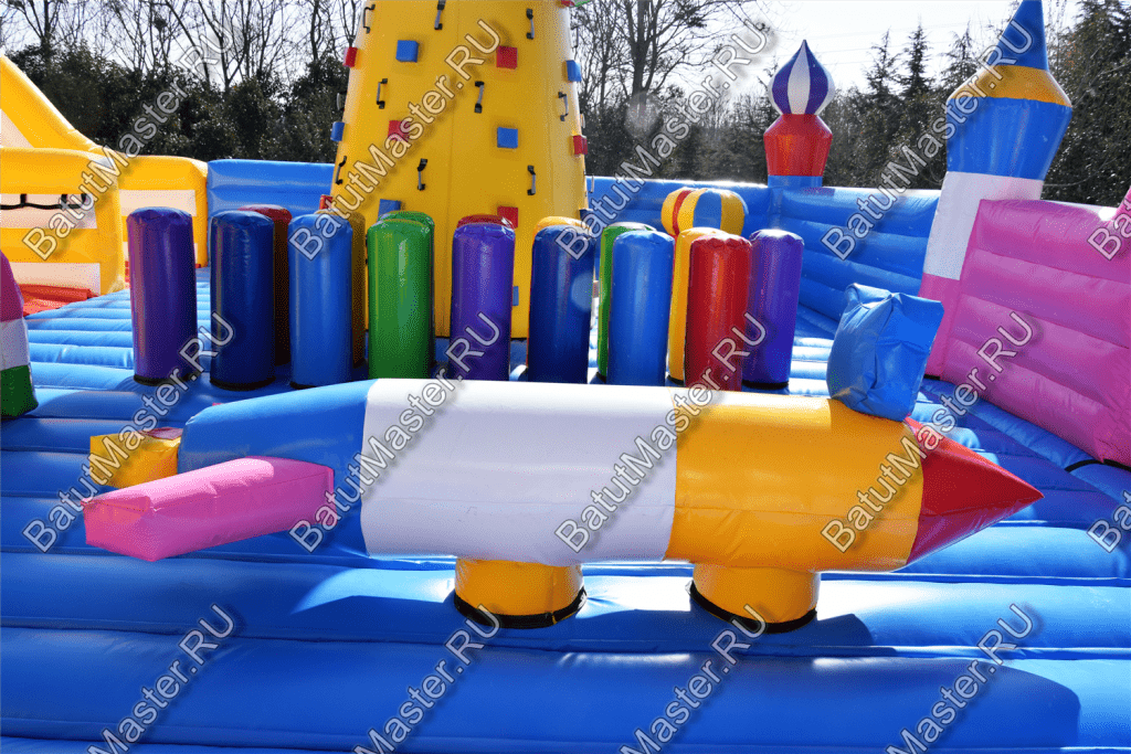 Ребят встретят надувные зверята, небольшой жёлто-розовый замок, несколько горок, красочные фигурки и скалодромы. Есть две зоны: одна для малышей, вторая для ребят постарше. У малышей есть своя небольшая горка, скалодром и полоса препятствий. То же самое есть и у второй группы детей. Они могут вдоволь накататься, при этом, не мешая друг другу. Если кто-то устанет и захочет отдохнуть, то может спрятаться в небольшом замке, укрывшись ото всех остальных.