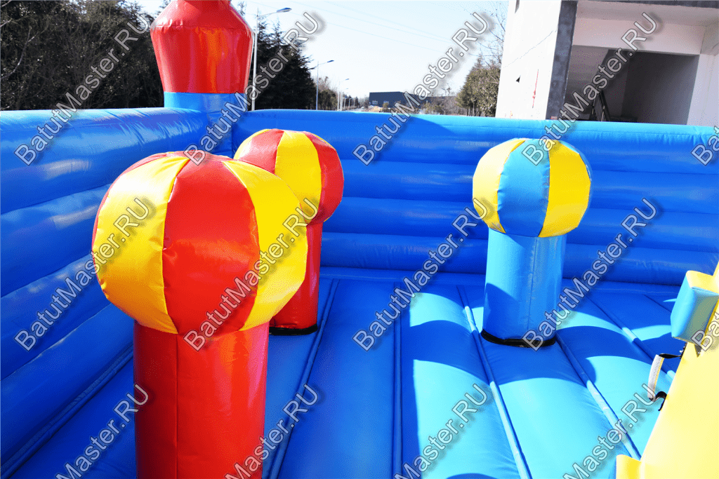 Коммерческий надувной батут открывает двери как перед самыми маленькими детишками, так уже и постарше. Оказавшись внутри, ребёнок с минуту просто не будет знать, куда же себя деть, ведь можно и скатиться с большой красной горки, можно попытаться залезть на скалодром, а также можно пройти через небольшую полосу препятствий ползком.