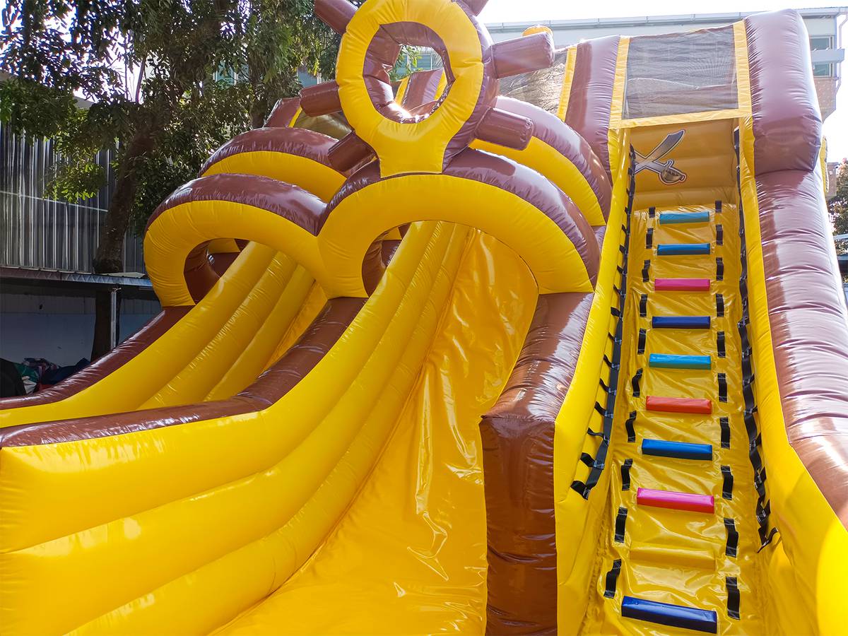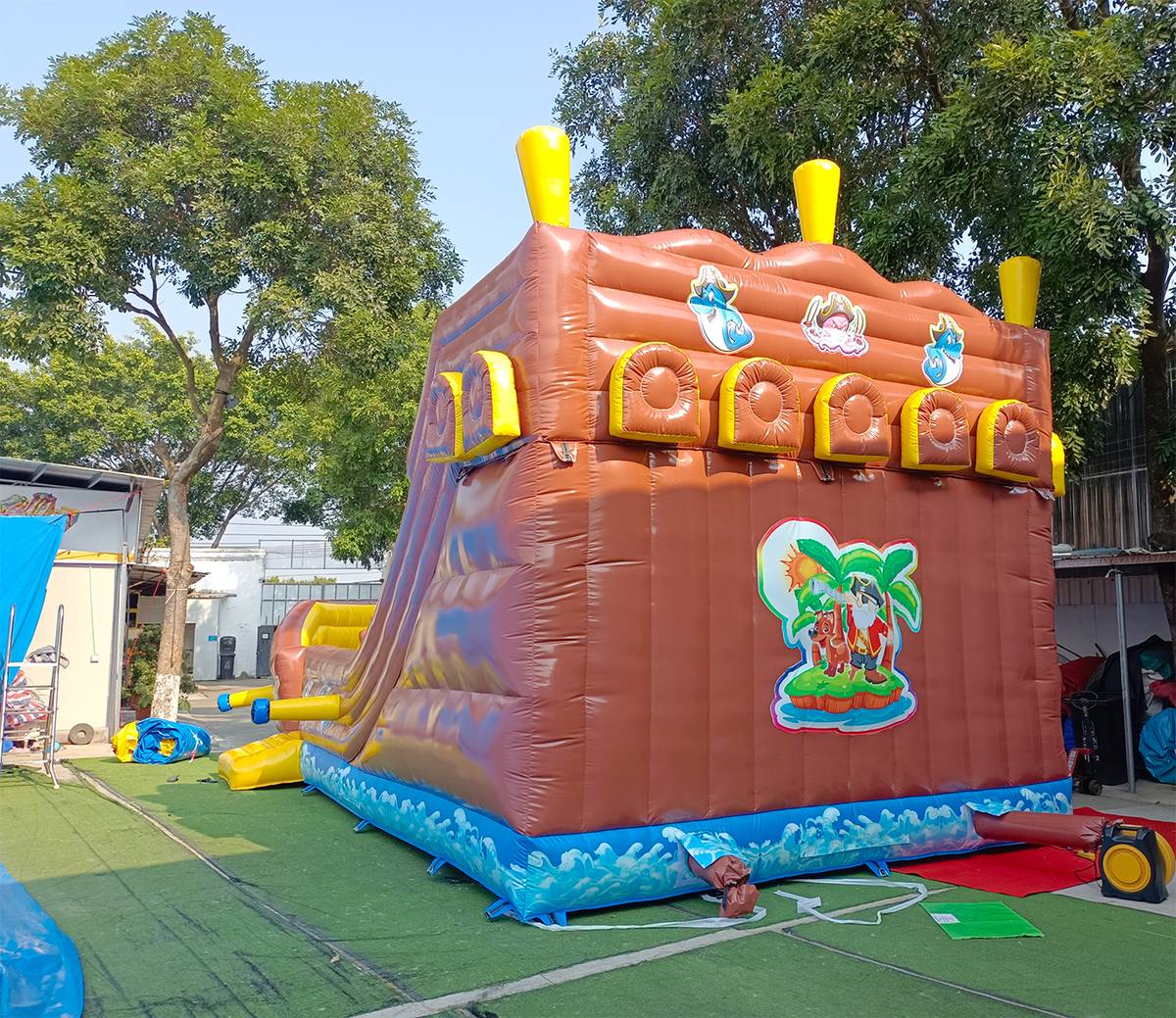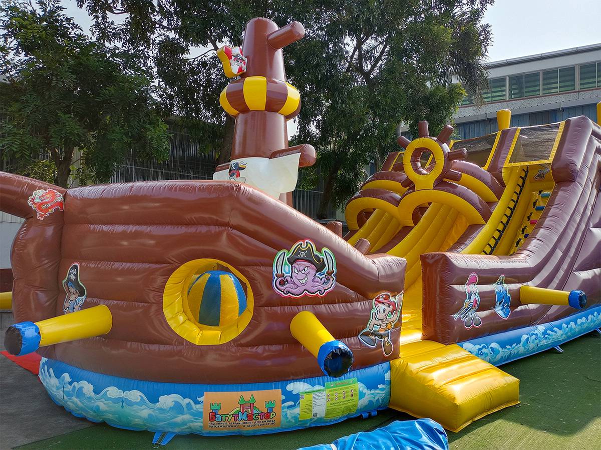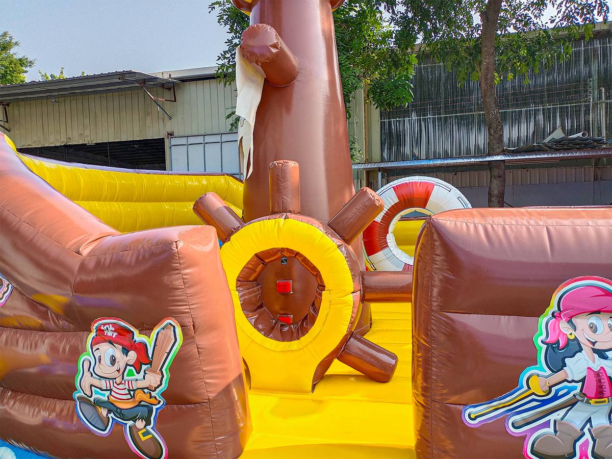 Надувной батут для бизнеса «Фрегат» способен удивить и по-настоящему порадовать детей разного возраста. Это красивый, современный и функциональный аттракцион, где каждый найдет себе занятие. Он сделан настолько реалистично, что создается впечатление, как будто на самом деле оказался на палубе знаменитого морского судна. Коричневый цвет с наружней стороны сделан в имитации бревен, что очень похоже на настоящий старинный корабль.