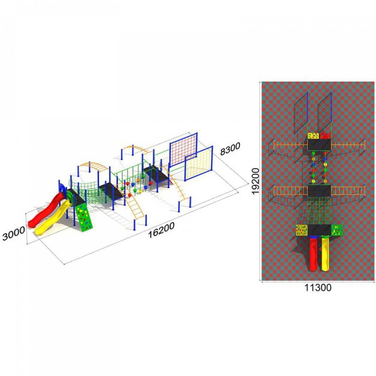 - Подвесные элементы в виде сеток и мостов, развивающие баланс и координацию.
