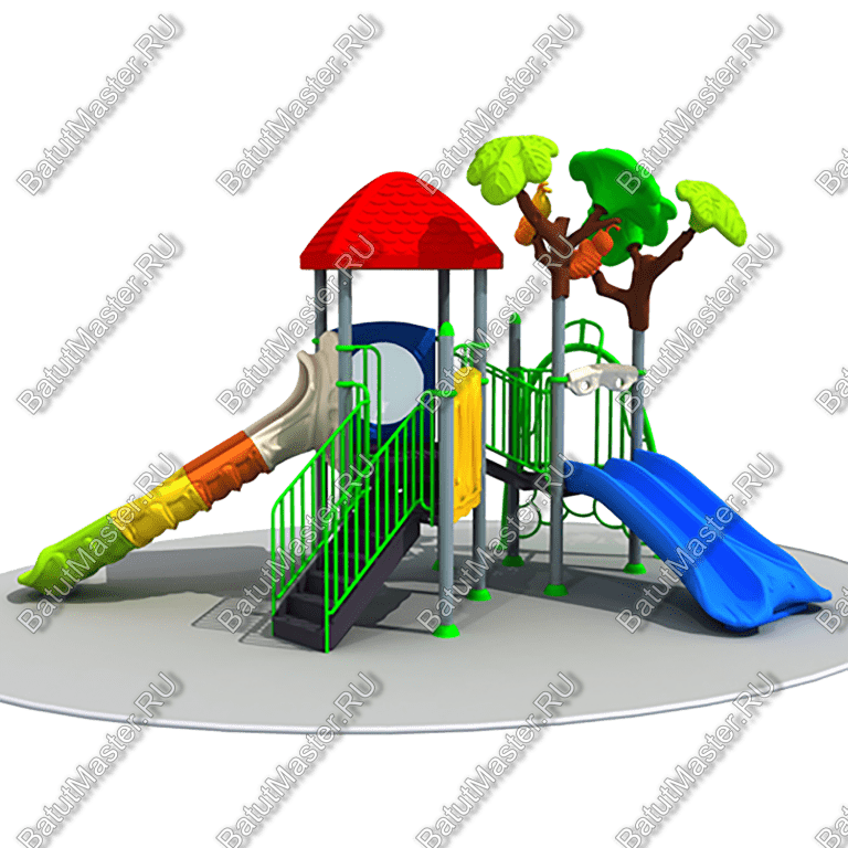 - Горки, крыши выполнены из пищевого полиэтилена низкого давления (ПНД), который не выгорает на солнце и сохраняет яркие цвета до 15 лет.