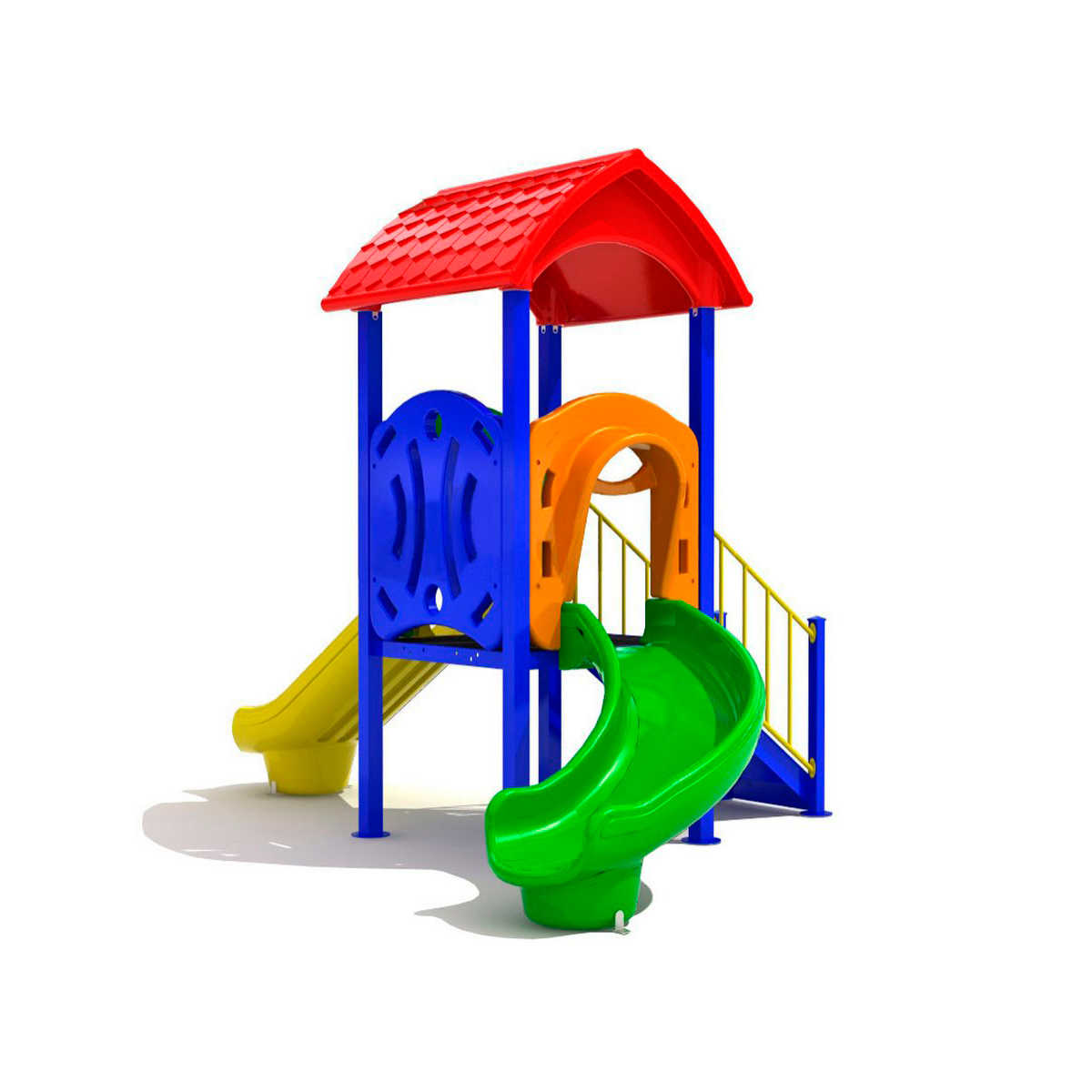 - Горки: Две горки разной формы делают процесс спуска веселым и разнообразным.