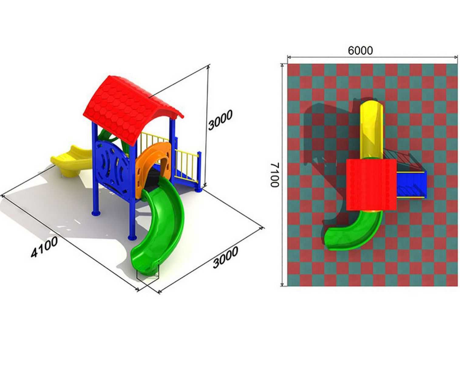- Горки, крыши выполнены из пищевого полиэтилена низкого давления (ПНД), который не выгорает на солнце и сохраняет яркие цвета до 15 лет.